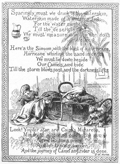 A ray of sunshine glides through the window into the first house, and shines encouragingly on little Minnie, who is trying to do her lessons.