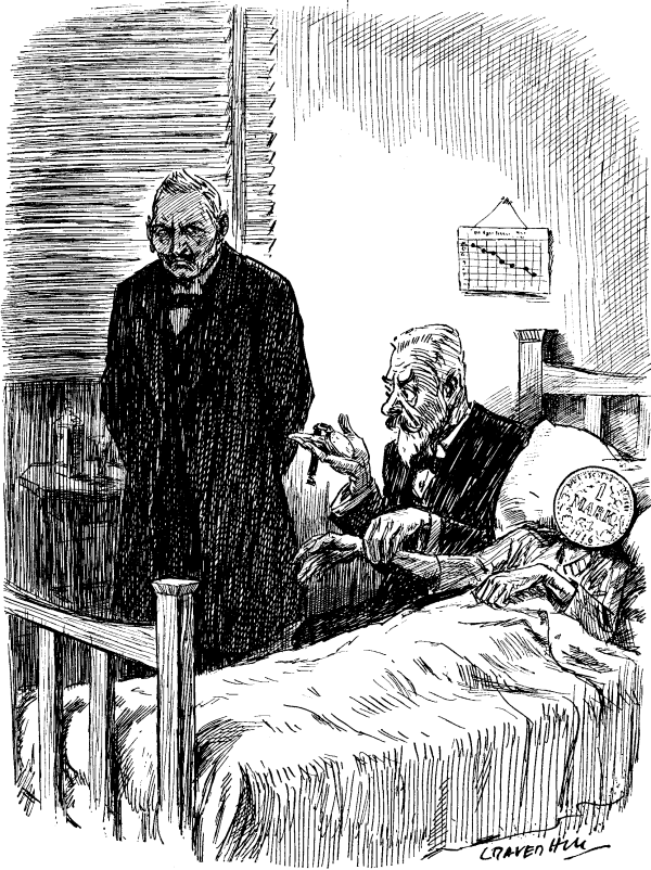 Old Farmer. "Na fear! Six-and-eightpence for t' advice? I'd rather chance a duckin'."