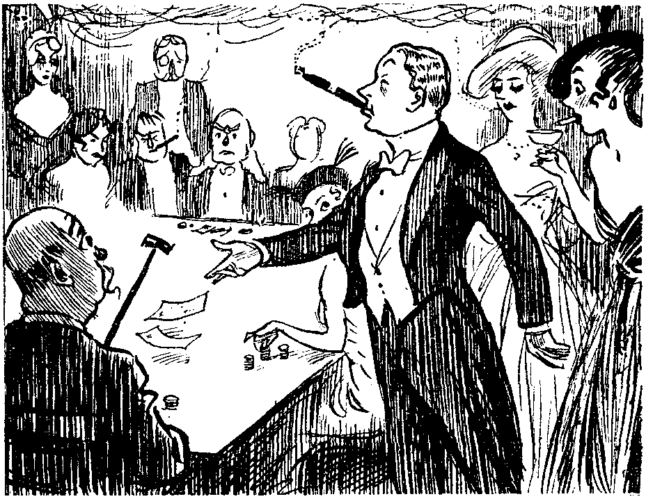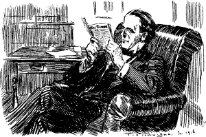 In the far corner I kept my eye on my book but my ears open. I could see that he was rushing to his doom.