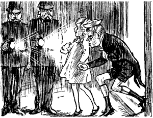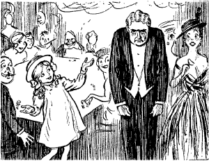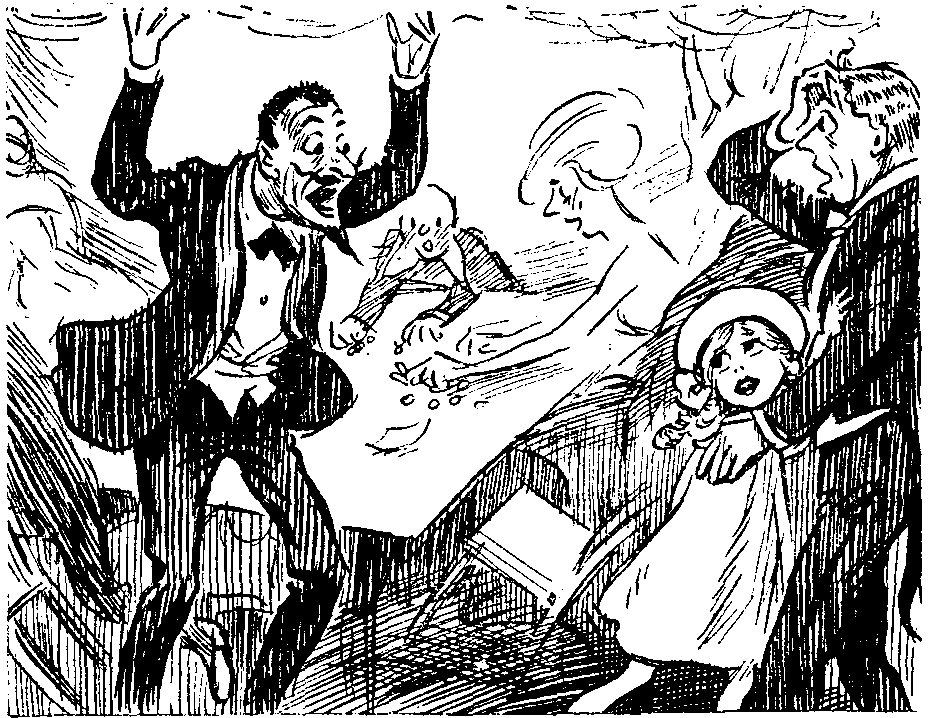 The date at which Emily needed so much assistance was clearly ante bellum, for there is no mention of hostilities, no gun-fire is heard from the direction of Westende, and Belgium is still bathing. But it must have been only just before the War, for the emancipation which the female sex here enjoys is marked by an extreme modernity. A decade or two ago we might have been shocked at the spectacle of a young lady turning up at a bachelor's flat at 9 A.M. on a Sunday in a ball-frock, after a night out at a dancing-club. Lately we have learnt to bear such escapades without flinching. But it was not so with Emily's guardian, Sir Samuel Lethbridge, very Victorian in his stuffy prejudice in favour of the decencies; and it was necessary to put him off with a tale of her sudden departure to Brussels to render first aid to an aunt stricken with mumps. In order to give colour to this fabrication Emily urges Dick Trotter, the bachelor of the flat (as soon as he returns from his own night out), to conduct her to the alleged invalid. He consents, but not without protest, for he is a roué of the old school and cannot approve of these platonic adventures; besides, he is about to se ranger by marriage with somebody else and (a matter of detail, but most inconvenient) is under contract to take her to Brighton for the day.