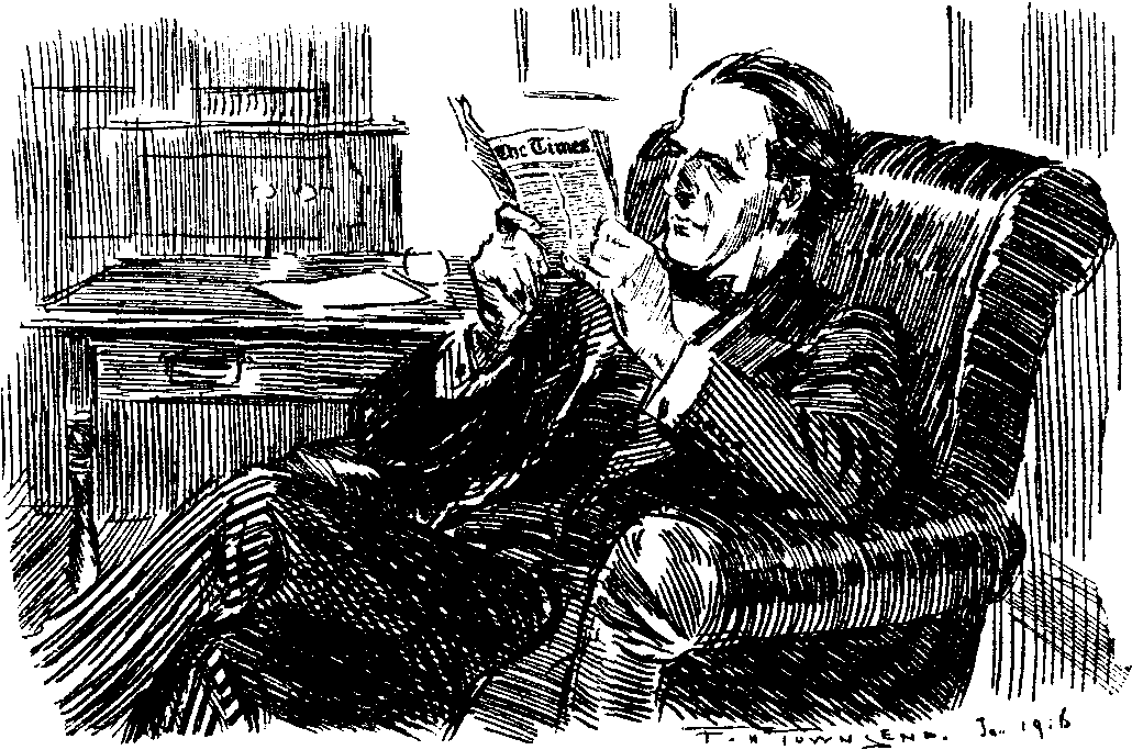 My dear Charles,—We're having a great time with our new arrival, one of those confounded civilians, who are only let into the business because the business, in these modern and highly complicated days, cannot be carried on without them. He's a jolly old Lieutenant of about fifty years; he has a concentrated experience of the world but doesn't remember having been mixed up in a big European war before. At first I kept on telling him that business is one thing and war is another, but he wouldn't see it and persisted in doing and saying and thinking things which were bound to land us in a national disaster. He had no respect whatever for the Pass Memo., his central and sole idea being to push along with the elimination of the Bosch. When he wanted something done, he just went to the Top-man of the department, called him "I say," and went straight to the point. The Top-man had never been asked to do business this way before.