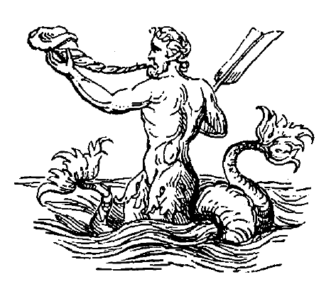 [37] The trident resembled the arrow-headed pronged fork, used by the fishermen of the Mediterranean Sea in the eel-fishery.
