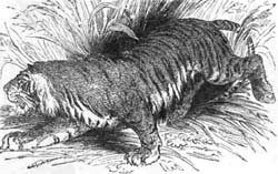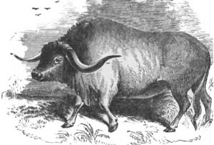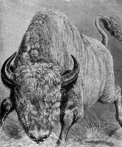N Aurochs in blind rage, charging through thick and thin, has had a fascination for me as long as I can remember. The true aurochs and this, the European Bison, ceased to exist in the British Isles, except in the Zoological Gardens; but the latter is still found wild in Lithuania, and is also carefully preserved in other parts of Russia, of which the Emperor has a herd. There is much talk about their being untamable—that they will not mix with tame cattle—that tame cows shrink from the aurochs' calves; but does not any cow shrink from any calf not her own? The American Bison, with which you are all pretty familiar, is very similar to the one just mentioned. There have been several attempts made to domesticate the American bison, and have been so far successful. The size and strength of the animal make it probable that if domesticated, it would be of great use.