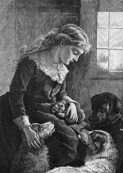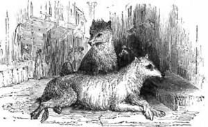 HE mastiff is a large, grave, sullen-looking dog, with a wide chest, noble head, long switch tail, bright eyes, and a loud, deep voice. Of all dogs this is the most vigilant watcher over the property of his master, and nothing can tempt him to betray the confidence reposed in him. Notwithstanding his commanding appearance, and the strictness with which he guards the property of his master, the mastiff is possessed of great mildness of character, and is very grateful for any favors bestowed upon him. I once went into the barn of a friend where there was a mastiff chained; I went up to the dog and patted him on the head, when out rushed the groom from the stable exclaiming, “Come away, sir! He's dangerous with strangers.” But I did not remove my hand nor show any fear. The consequence was, that the dog and I were the best of friends; but had I shown any fear, and hastily removed my hand, I might have fared rather badly, for this dog always couples fear with guilt.