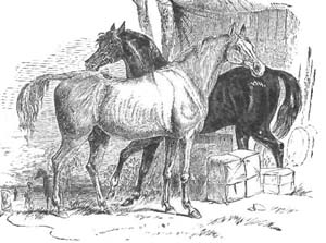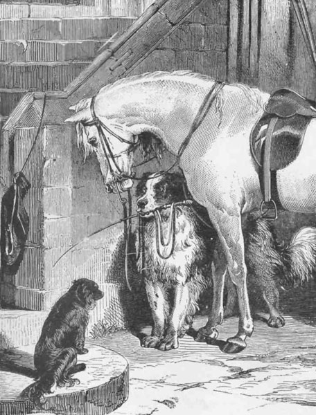 N one occasion a gentleman was returning home from a fatiguing journey, and became very drowsy. He fell asleep, and, strange to say, he also fell from his saddle, but in so easy a manner that the tumble did not rouse him, and lay sleeping on where he alighted. His faithful steed, on being eased of his burden, instead of scampering home as one might have expected, stood by his prostrate master, and kept a strict watch over him. Some laborers at sunrise found him very contentedly snoozing on a heap of stones. They wished to approach the gentleman, that they might awaken him, but every attempt on their part was resolutely opposed by the grinning teeth and ready heels of his determined and faithful guardian. They called out loudly, and the gentleman awoke and was very much surprised at his position, while his faithful horse showed his pleasure by neighing and scraping his feet on the ground. The gentleman then mounted, and they galloped away at great speed, both glad to be able to make up for lost time.
