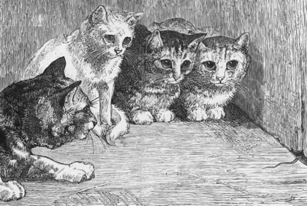 ATS are very ingenious little creatures; they have actually been known to convey eggs up a staircase, from the pantry to their nest! Here is a beautiful picture, by Mr. Harrison Weir, from the “Children's Friend,” showing how they did it.
