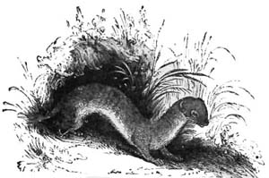 The rat bears little resemblance to the rats with which we are chiefly acquainted, namely, the black rat, the albino or white rat, and the brown rat. The other day, as I was walking by the river-side, I saw a beautiful little creature sitting on a stone in the stream, with a piece of succulent root between its forepaws, and nibbling its repast in perfect peace with every living thing. It was timid and innocent in the expression of its countenance. Its color was of a reddish brown. It was about as large as the common rat of the sewers, but its tail was much shorter, and covered with hair.