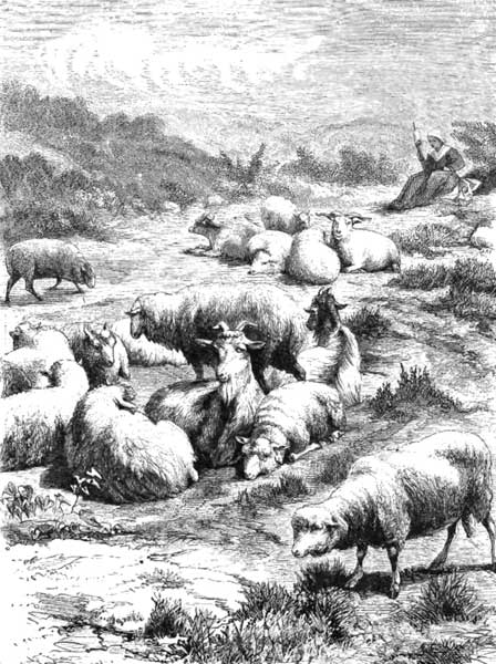 N Switzerland, one of the chief employments of the people is that of herdsmen and shepherds, and nearly the half of the surface of the country is occupied as mountain pastures and meadows. Here you see the woman tending the sheep and goats, and spinning industriously, while her husband is busy with some other part of the duties of tending the sheep. It is often painful to see how much the poor sheep and oxen suffer while being driven through the streets. It is pitiful to see them looking in vain for some place of rest and shelter. Little boys in towns sometimes like to HELP—as they call it—to drive cattle, but they generally increase the terror and confusion of the poor beasts, and little think of the pain they are causing. Sheep and goats are very useful to us; besides serving us for food, they supply our cloth and flannel clothes, blankets, and other warm coverings.