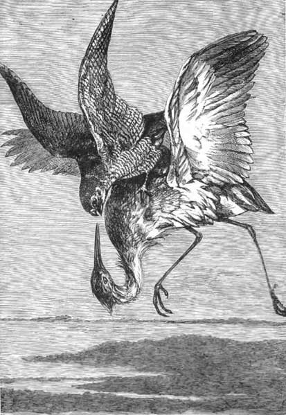 HE Heron when attacked by an eagle or falcon endeavors to escape by rising in the air and getting above its foe. The wings of the heron strike the air with an equal and regular motion which raises its body to such an elevation that at a distance nothing is seen except the wings, which are at last lost sight of in the region of the clouds.