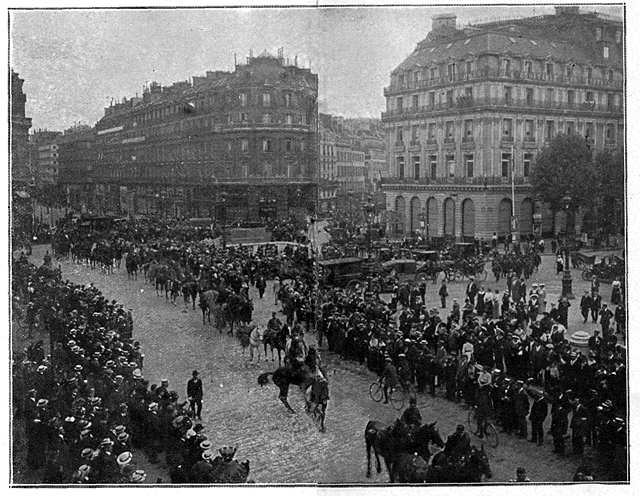 Un convoi de chevaux réquisitionnés traverse a place de l'Opéra.