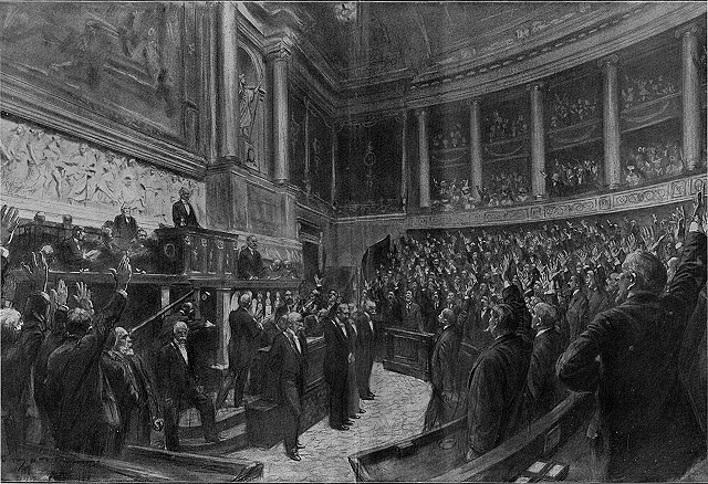A midi, conseil des ministres à l'Elysée: le président signe le décret de mobilisation générale. A 4 heures est affiché l'ordre, portant que le premier jour de la mobilisation est le dimanche 2 août. L'état de siège est proclamé.