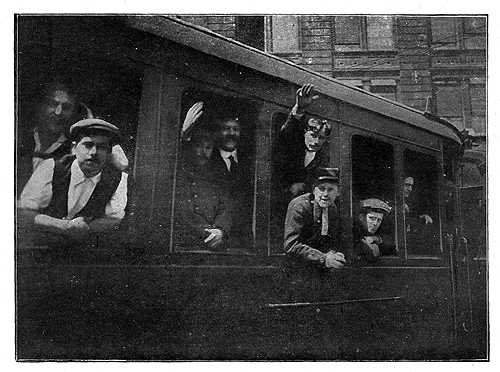 La mobilisation n'était point officielle encore; mais les premiers appels individuels avaient été lancés dans les campagnes, et de toutes parts, au lever du jour, on voyait s'avancer allégrement, joyeusement, sur les routes, ceux de qui la Patrie réclame les coeurs et les bras. Ils marchaient par groupes, au pas, dans la splendeur du soleil levant; et soudain le chant d'un coq résonna; à ce coup de clairon, nous contait un de ces jeunes hommes, un autre coup de clairon répondit; puis deux, puis trois; et bientôt ce fut, au-dessus des fermes et des chaumières, comme un concert de notes stridentes et joyeuses qui s'élevait...