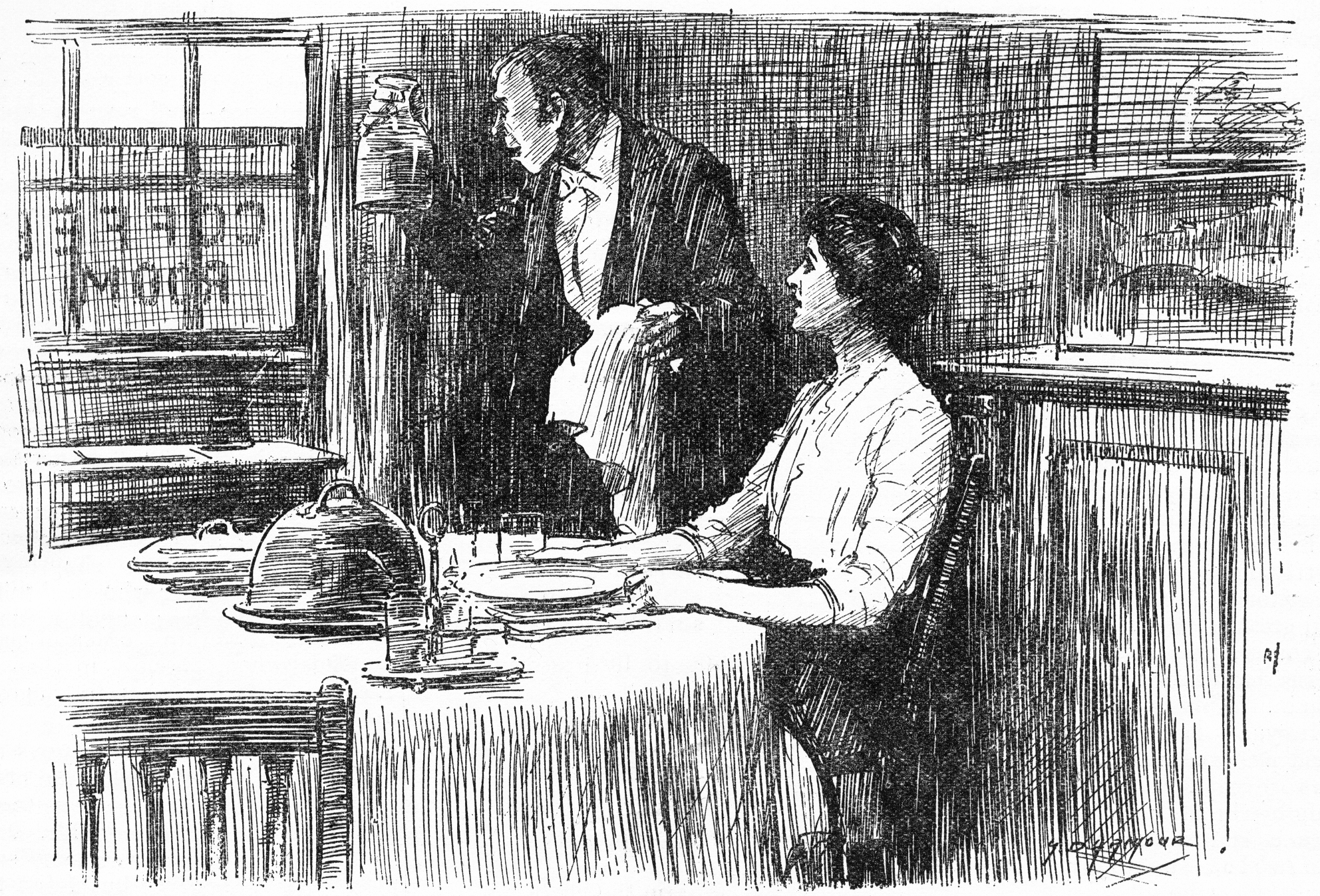As dress parades have become quite a feature of modern life, surely the restaurant offers a rich field of advertisement for the enterprising outfitter through the medium of waiters.