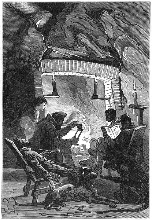 Gedurende de maand Juni was het vinnig koud, maar men spaarde hout noch steenkolen. Cyrus Smith had een tweeden schoorsteen gebouwd in de groote zaal, en daar bracht men de lange avonden door. Onder het werken praatte men en in de vrije uren werd er gewoonlijk gelezen; de tijd snelde voorbij.
