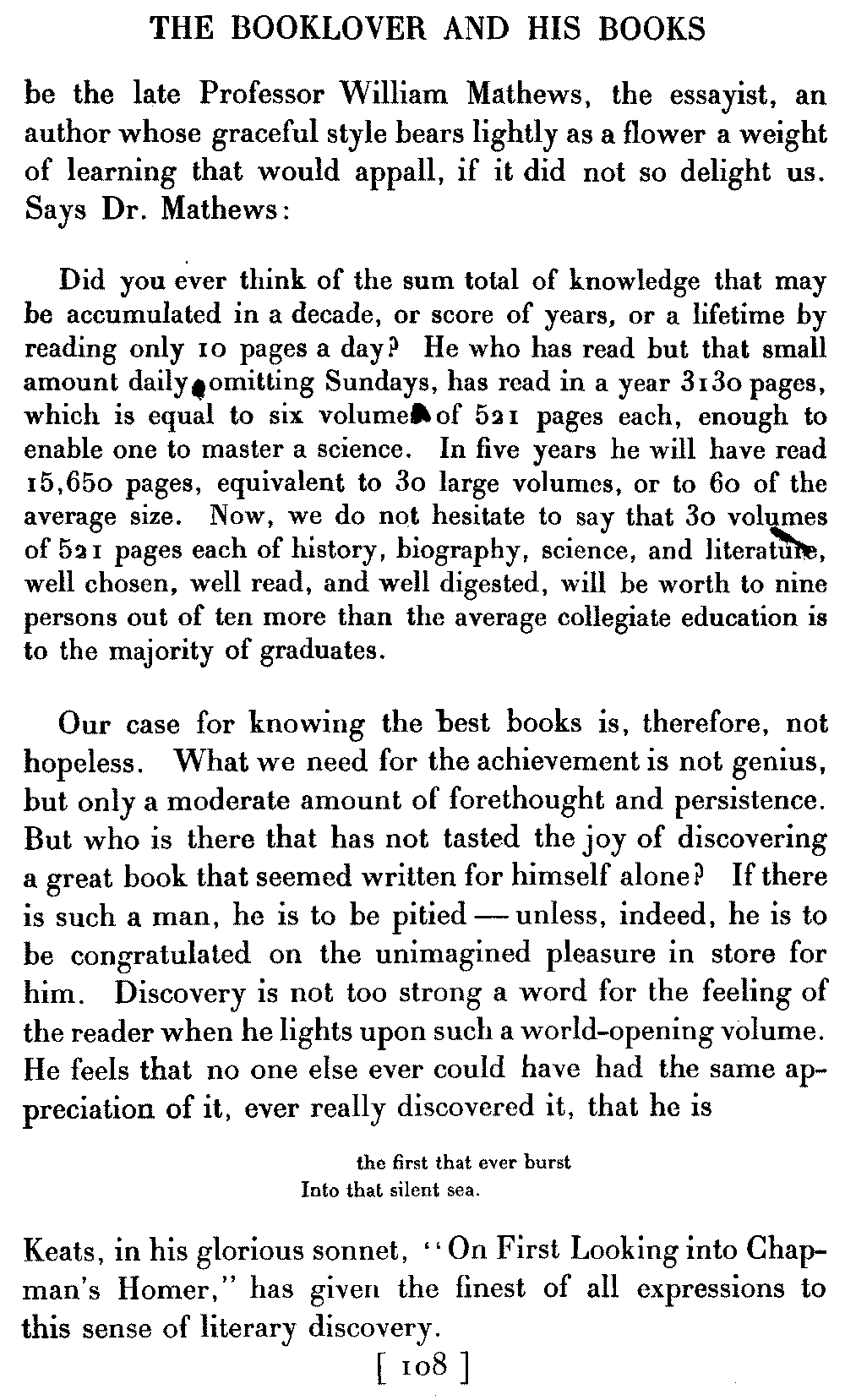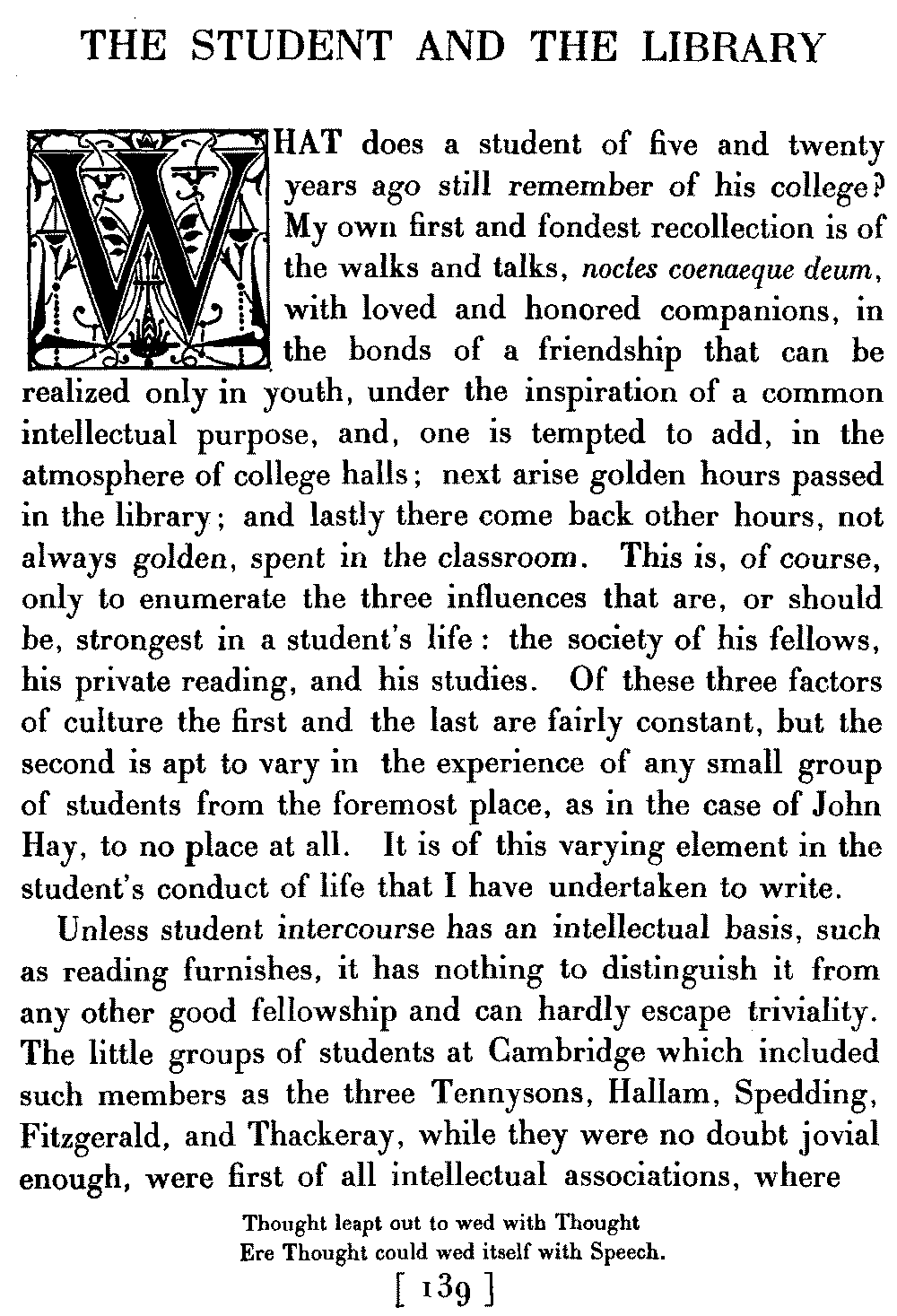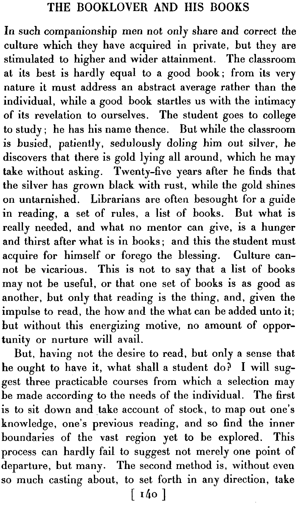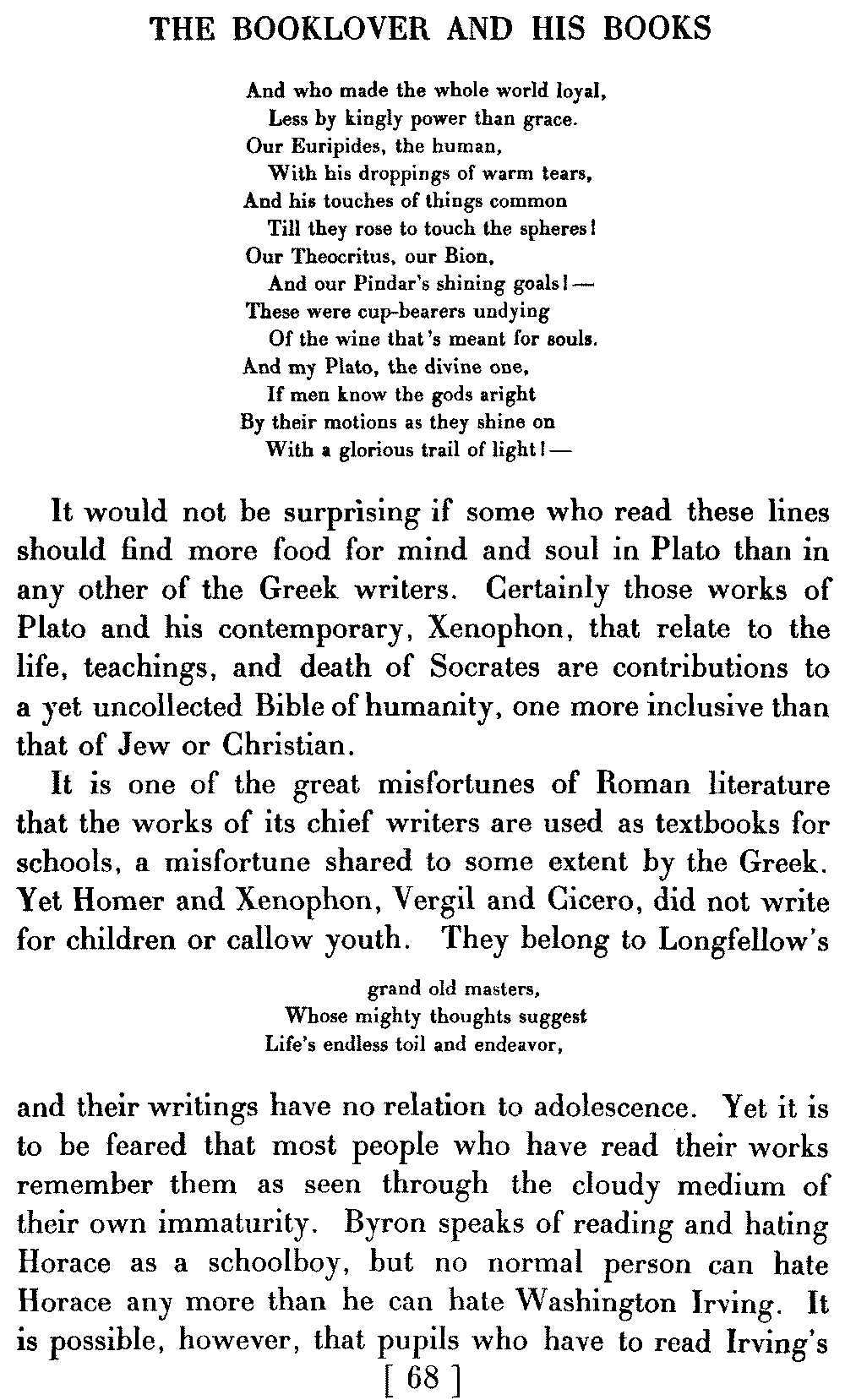 Finally, if his book-love develops the missionary spirit in him, let him lend his support to the printers and publishers[8] of to-day who are producing books worthy of the booklover's regard, for in no other way can he so effectually speed the day when all books shall justify the emotion which more than five hundred years ago Richard de Bury, Bishop of Durham, expressed in the title of his famous and still cherished work, the Philobiblon.