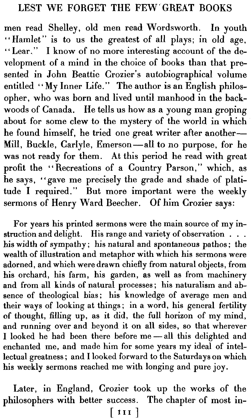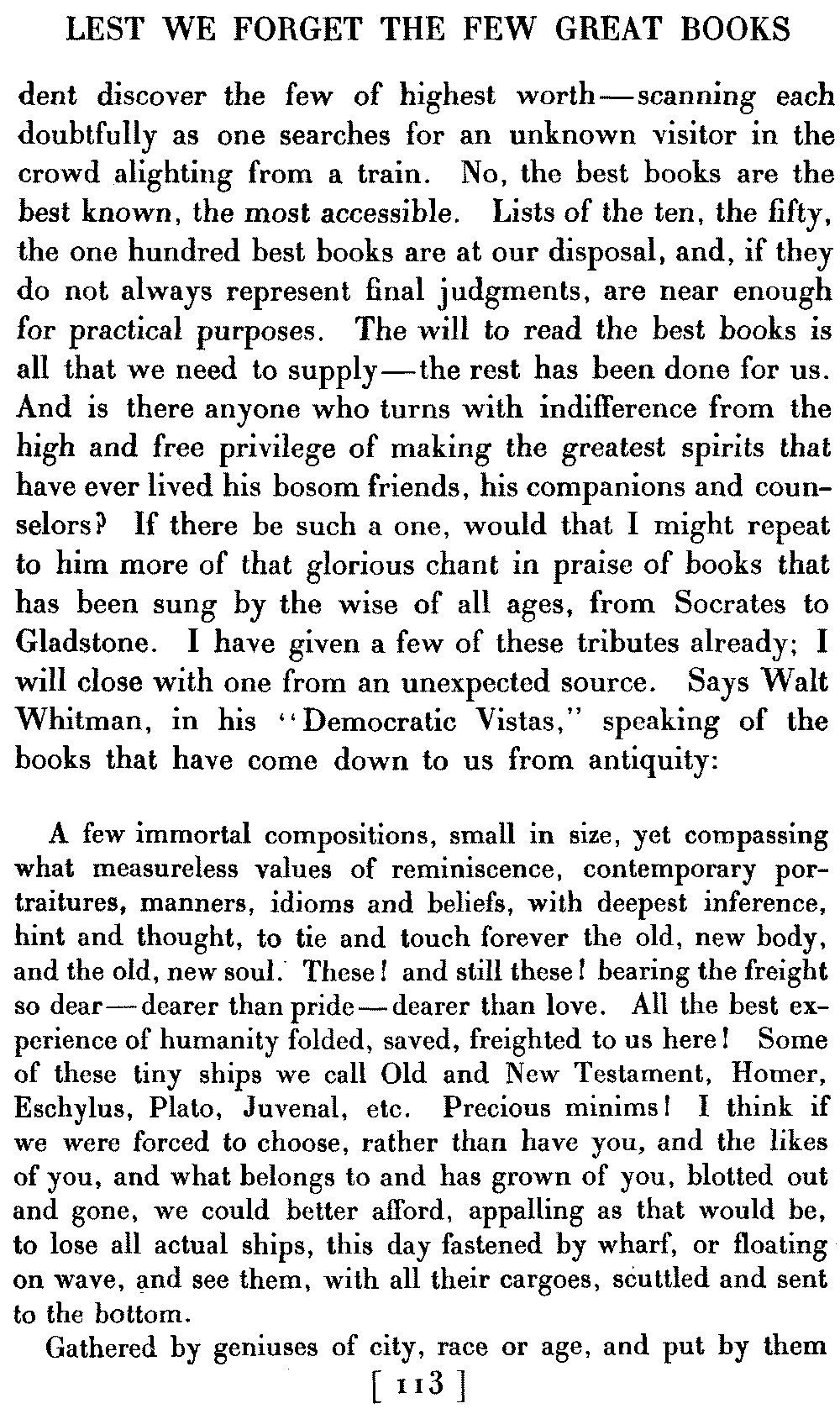 Whitman, Walt, on the world's greatest books, 113, 114.