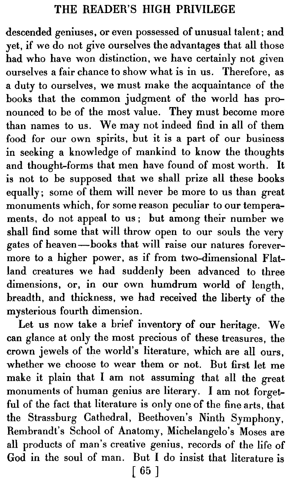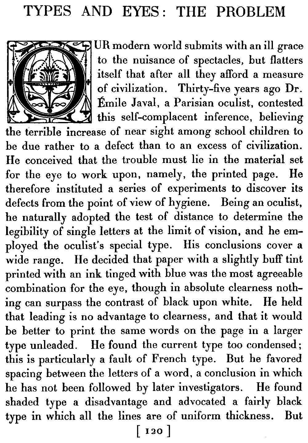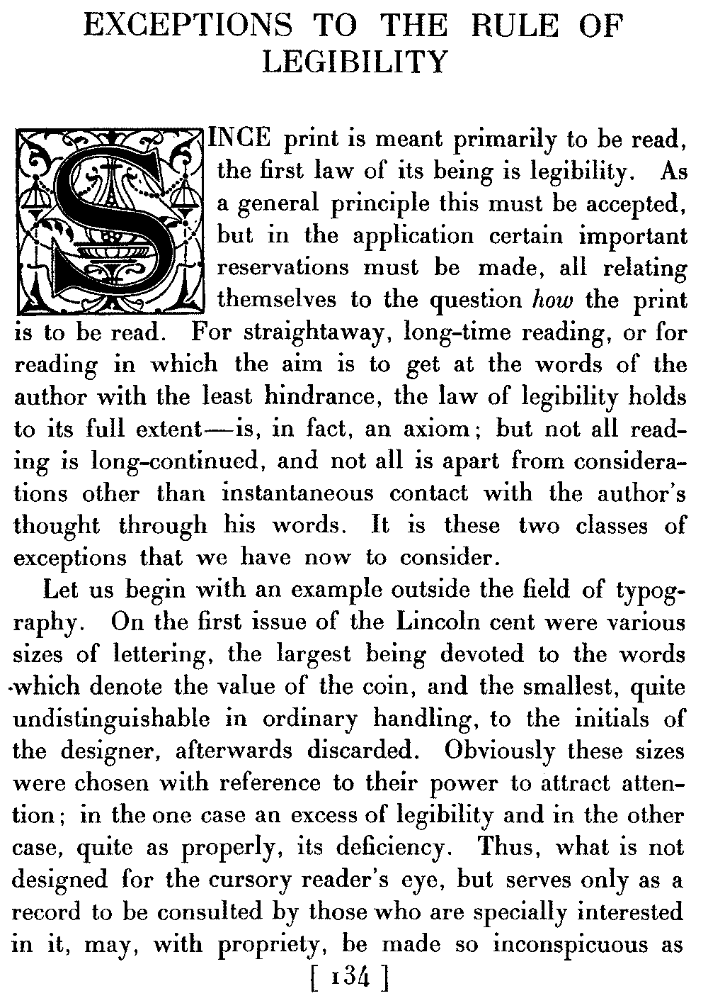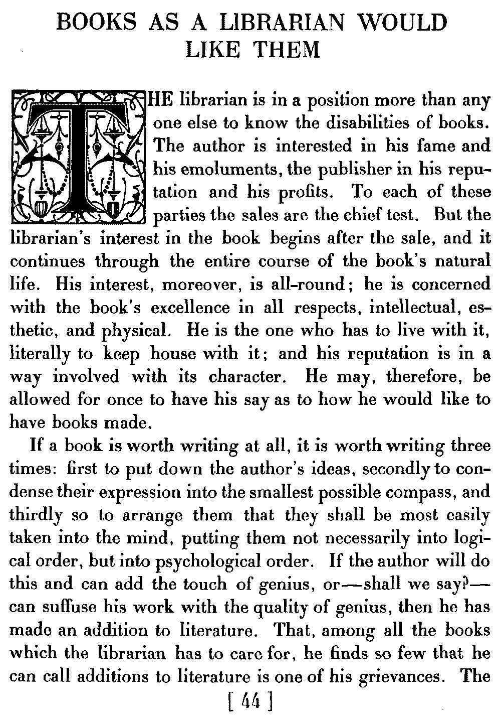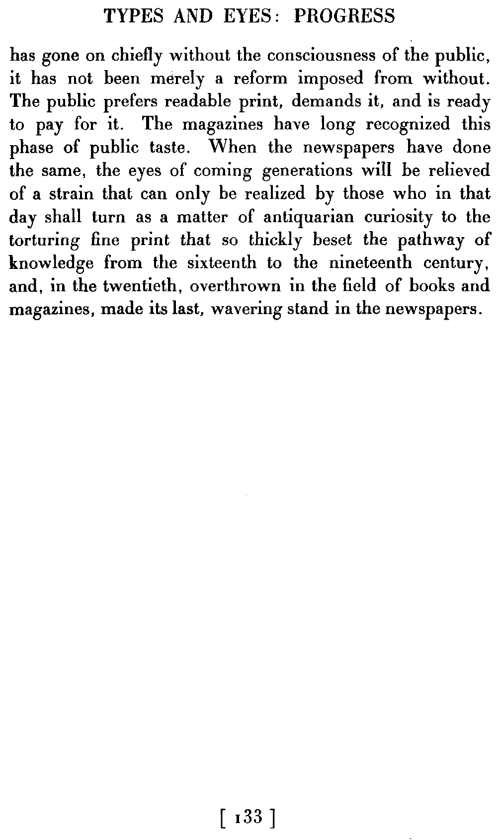 It is surely not an extreme assumption that the first duty of the printer is to the meaning of his author, and his second to esthetics; but shall we not rather say that his duty is to meet both demands, not by a compromise, but by a complete satisfaction of each? A difficult requirement, surely, but one that we are confident the twentieth-century printer will not permit his critics to pronounce impossible.