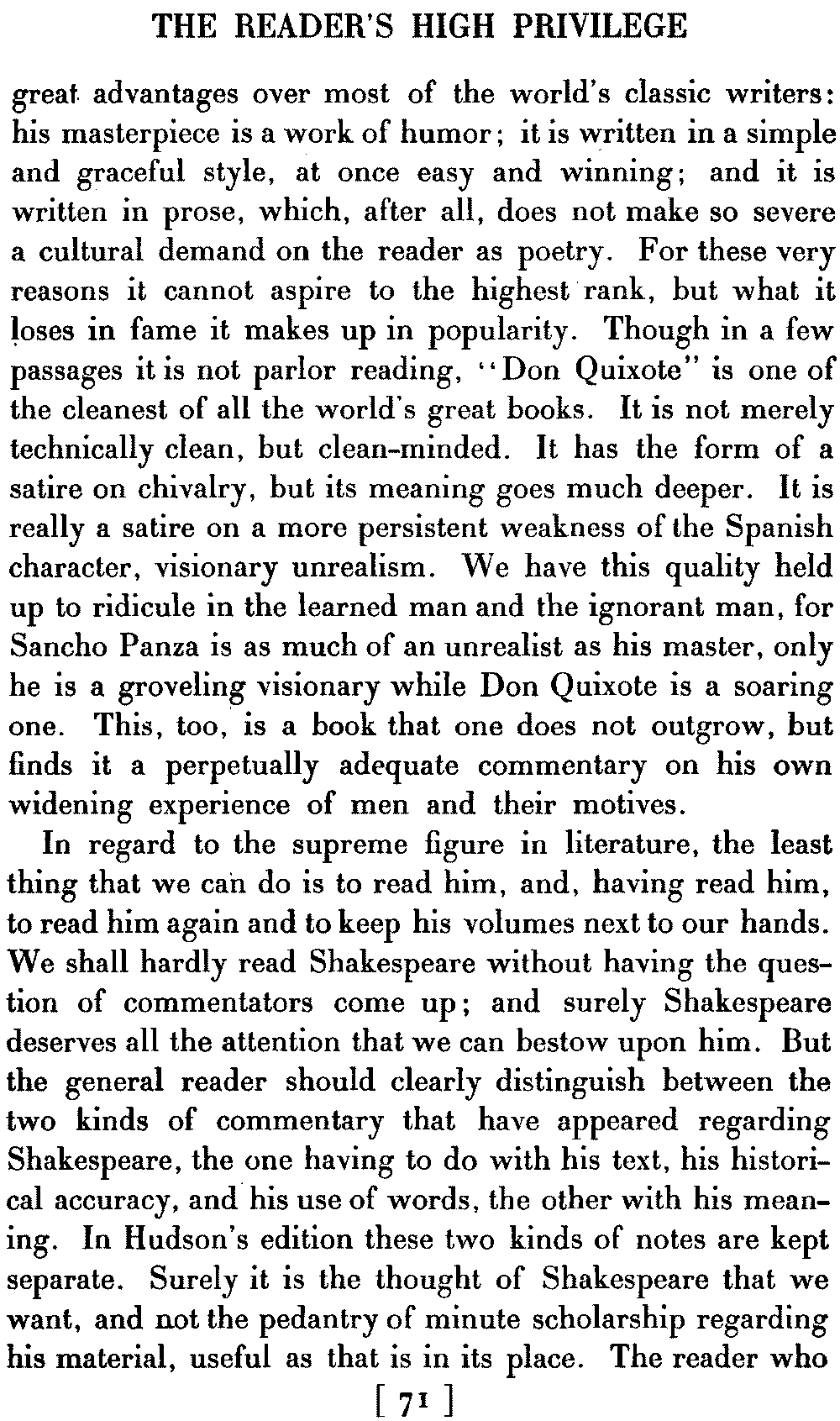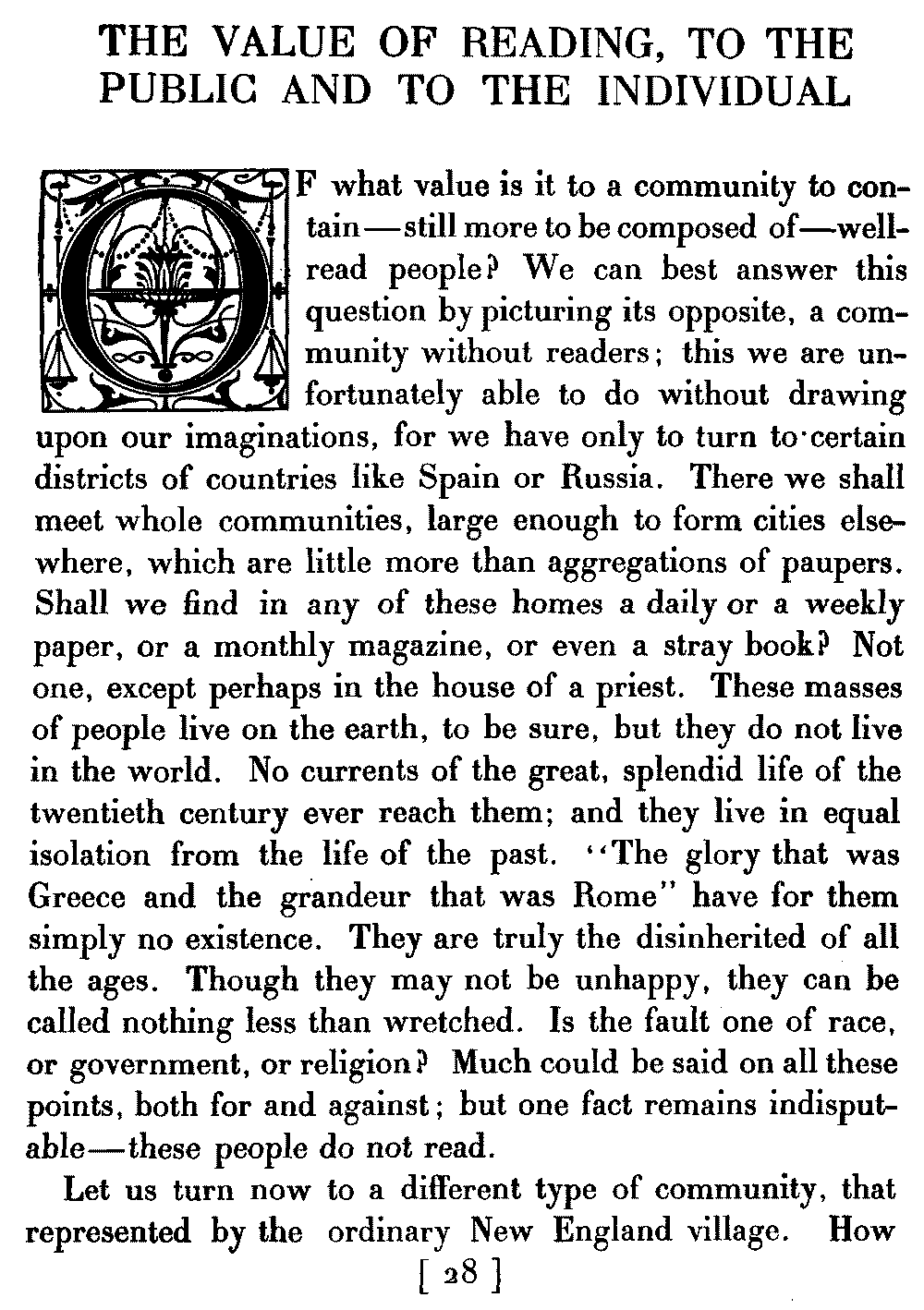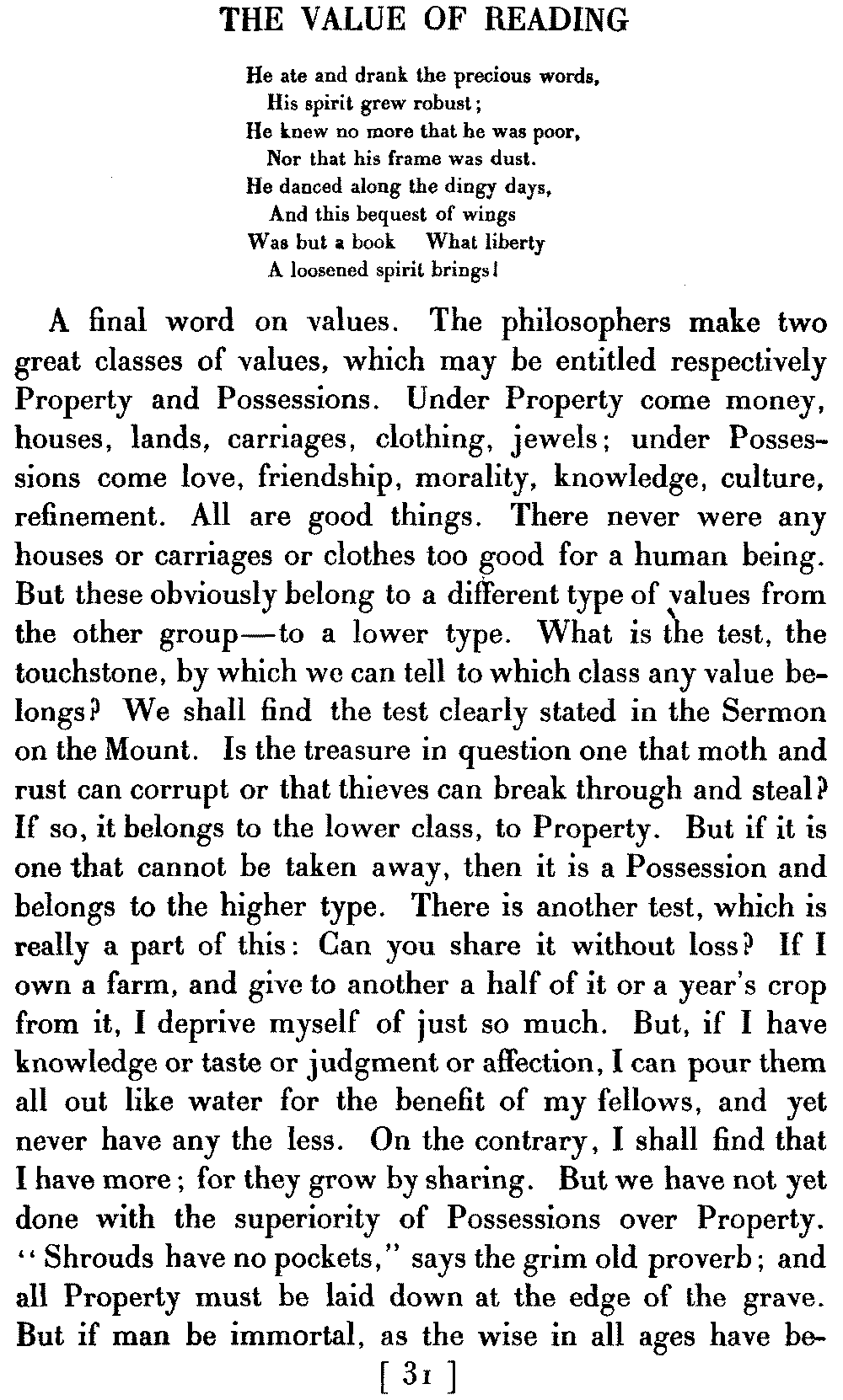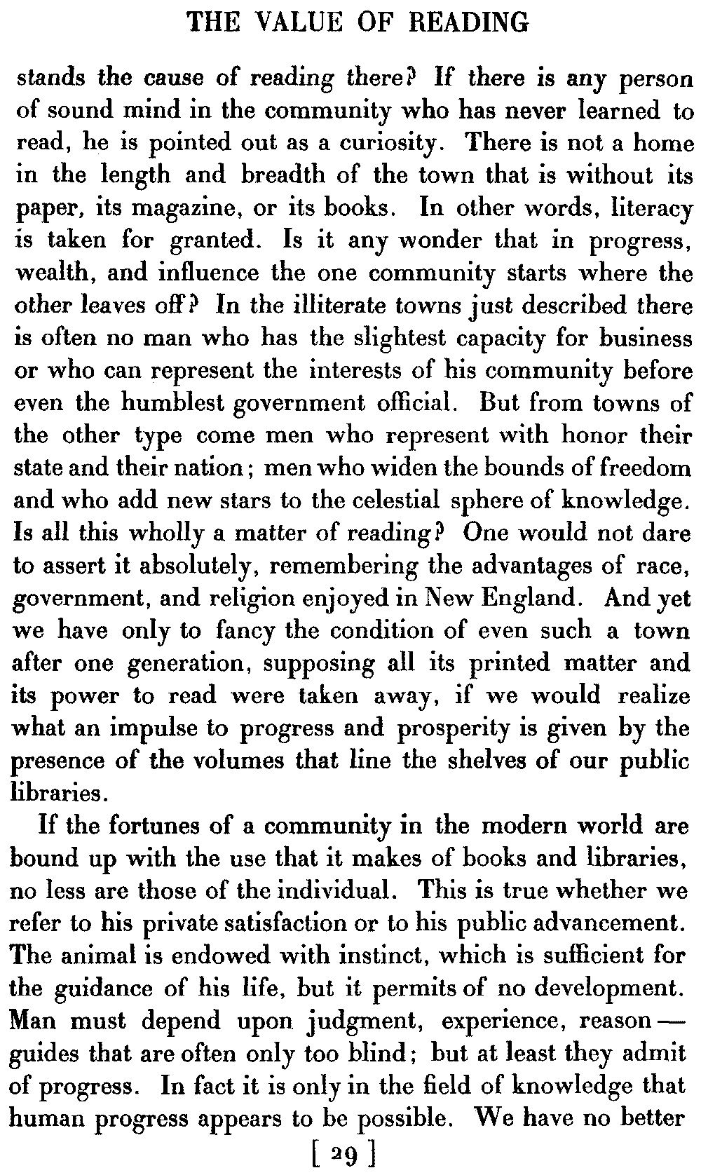 Table of Contents: The chapter heading "The Value of Reading" is an abbreviation of the chapter heading on page 28. Left as is