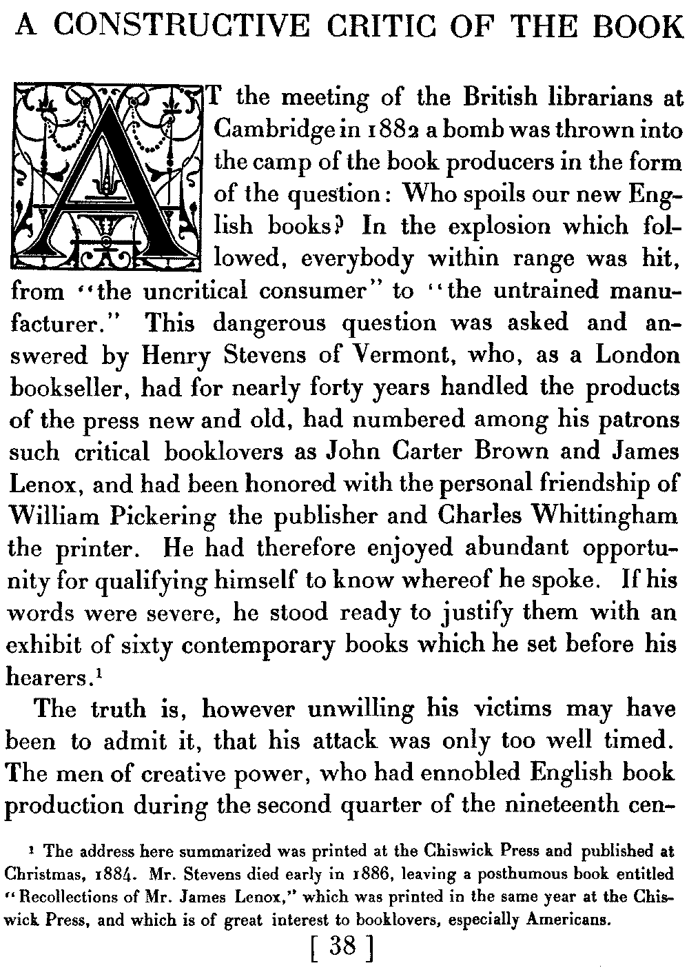 Stevens, Henry, "A constructive critic of the book," 38-43;