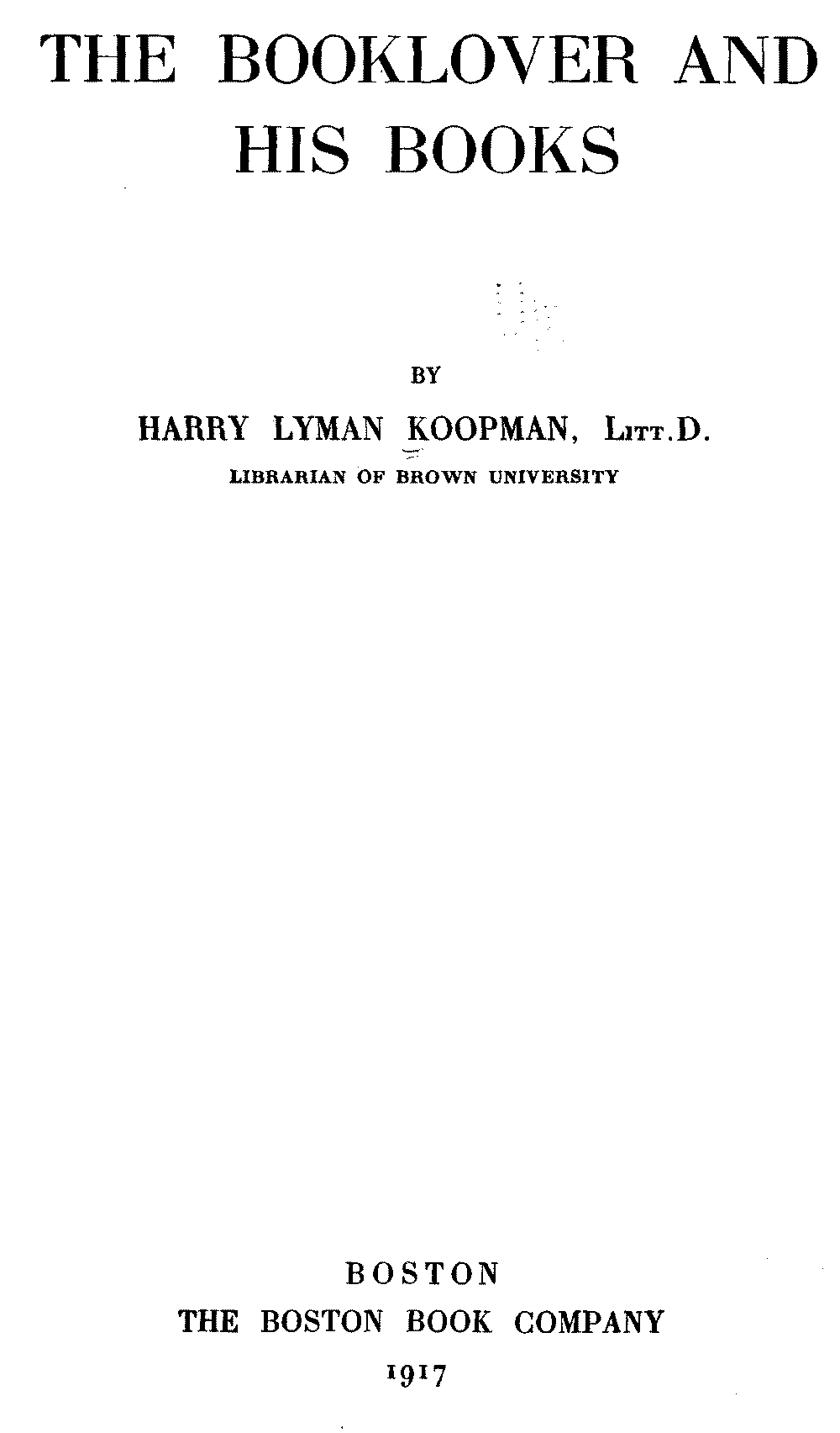 Most of these chapters appeared as papers in "The Printing Art"; two were published in "The Graphic Arts," and some in other magazines. The writer expresses his thanks to the proprietors of these periodicals for the permission to republish the articles in their present collective form. All the papers have been revised to some extent. They were originally written in rare moments of leisure scattered through the busy hours of a librarian. Their writing was a source of pleasure, and their first publication brought him many delightful associations. As they are presented in their new attire to another group of readers, their author can wish for them no better fortune than to meet—possibly to make—booklovers.