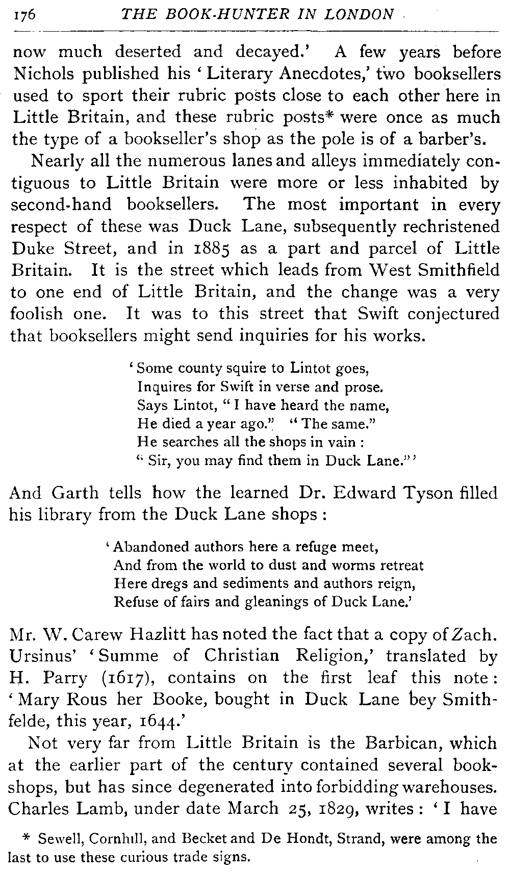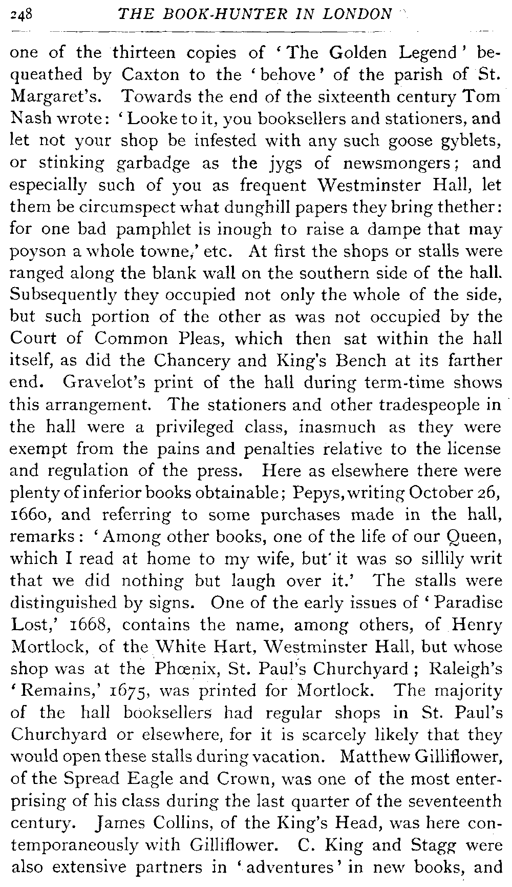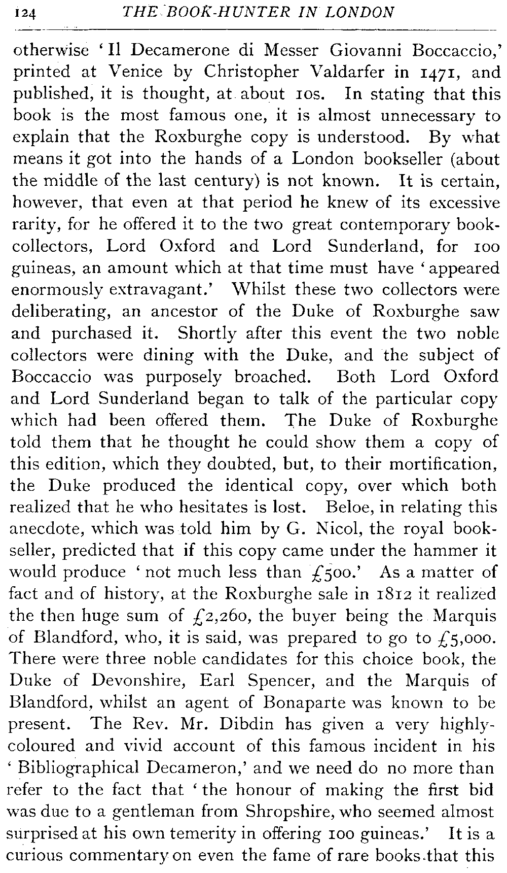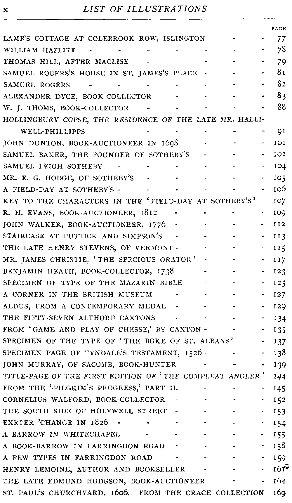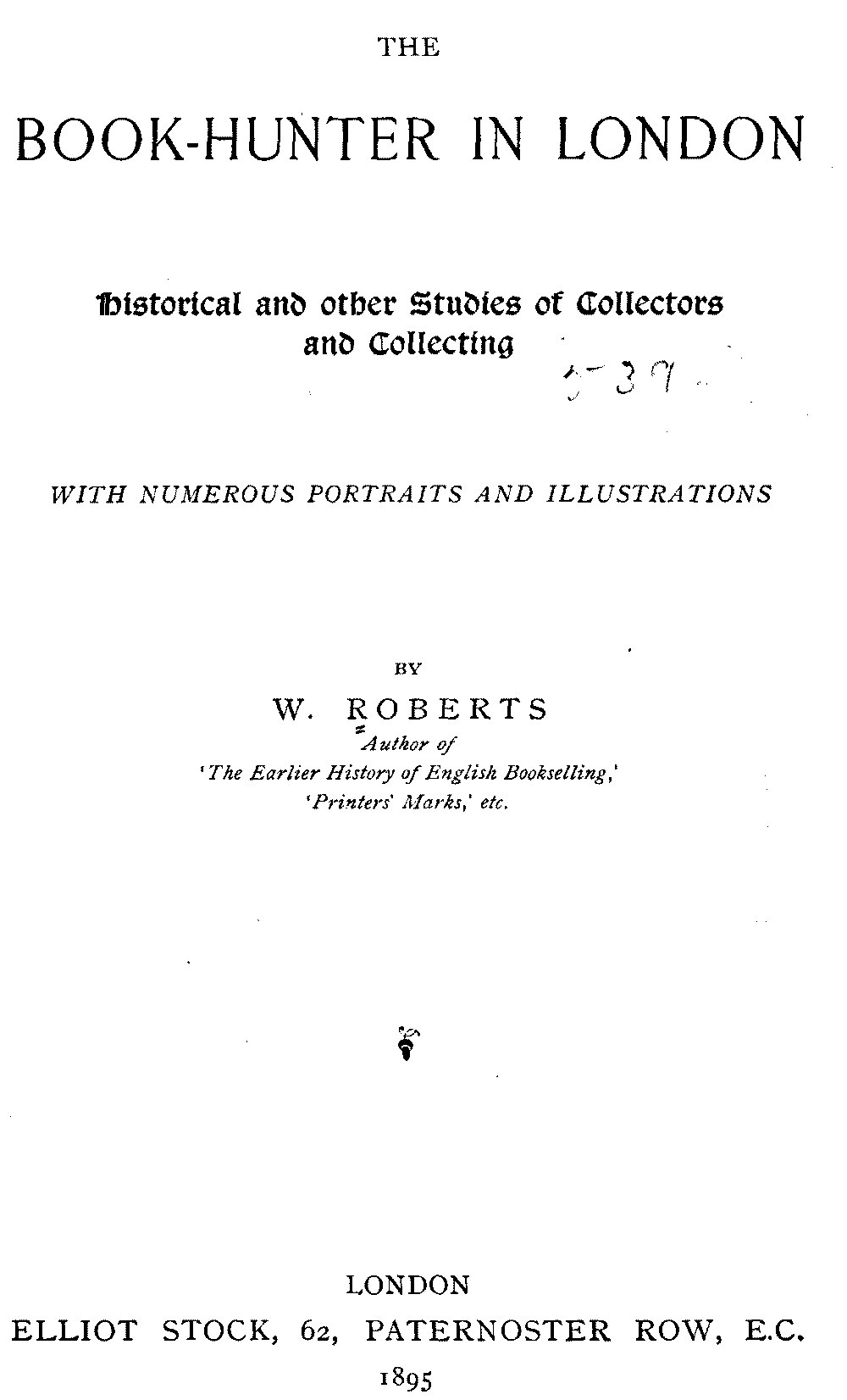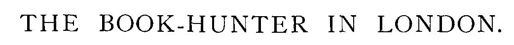 'The Book-hunter in London' is the outcome not only of material which has been accumulating for many years past, from published and unpublished sources, but also of a long and pleasant intercourse with the leading book-collectors and booksellers in London, not to mention a vigorous and constant prosecution of one of the most pleasant and instructive of hobbies. The author has freely availed himself of the information in the works of Dibdin, Nichols, and other writers on the subject, but their statements have been verified whenever possible, and acknowledgements have been made in the proper places to the authorities laid under contribution.