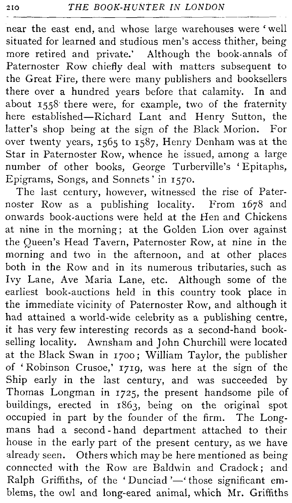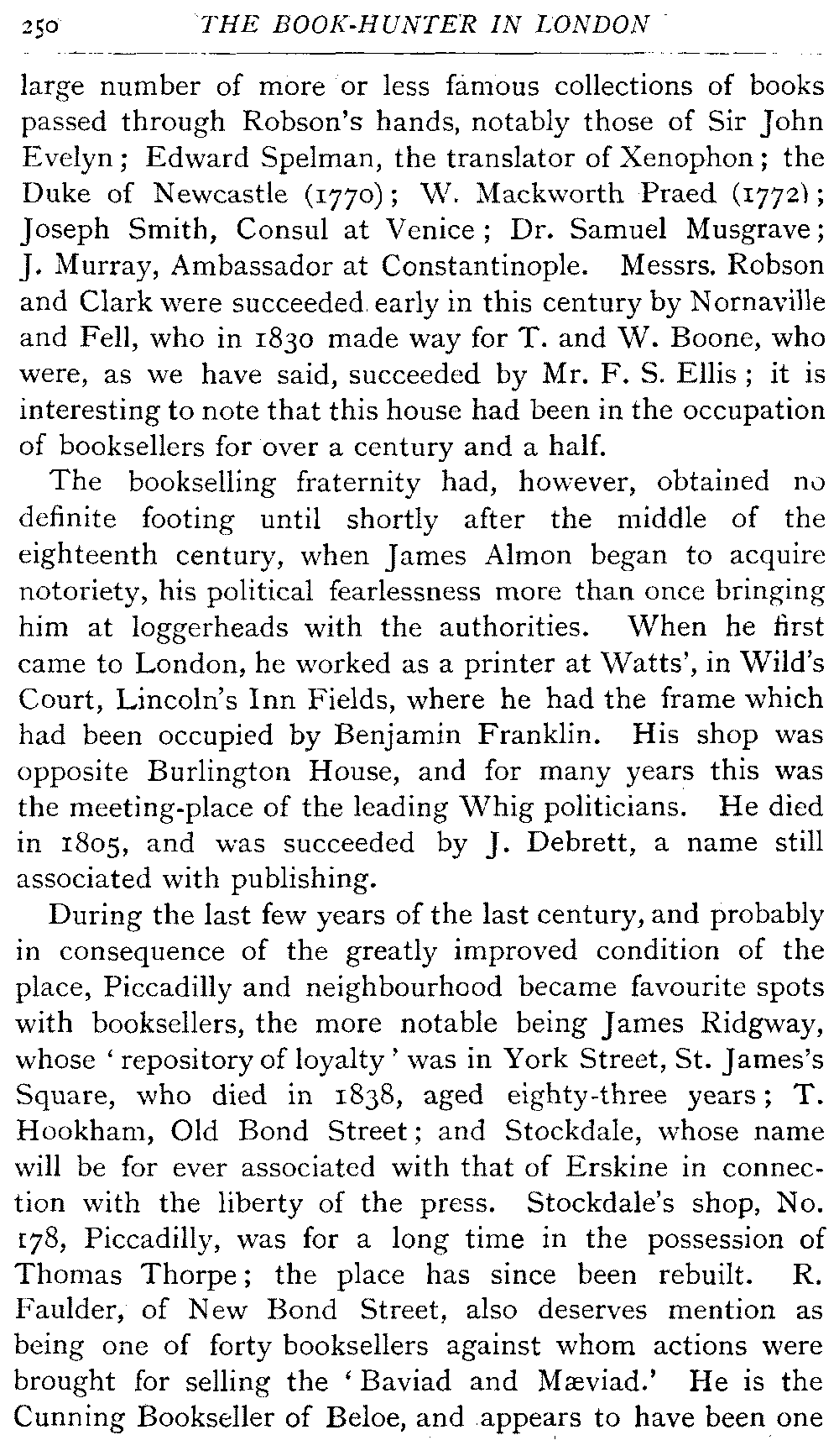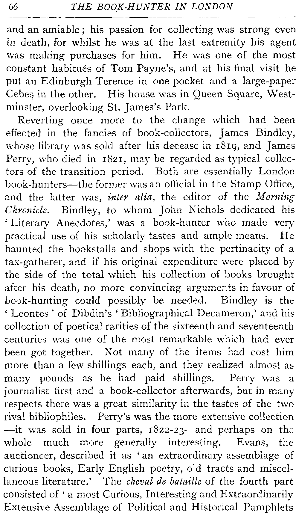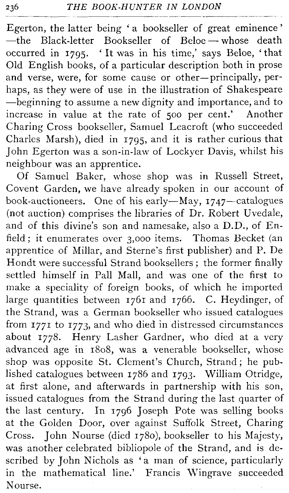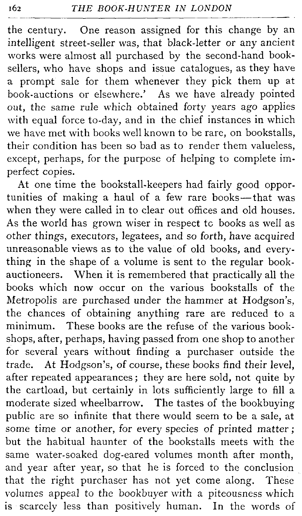 'The Book-hunter in London' is the outcome not only of material which has been accumulating for many years past, from published and unpublished sources, but also of a long and pleasant intercourse with the leading book-collectors and booksellers in London, not to mention a vigorous and constant prosecution of one of the most pleasant and instructive of hobbies. The author has freely availed himself of the information in the works of Dibdin, Nichols, and other writers on the subject, but their statements have been verified whenever possible, and acknowledgements have been made in the proper places to the authorities laid under contribution.