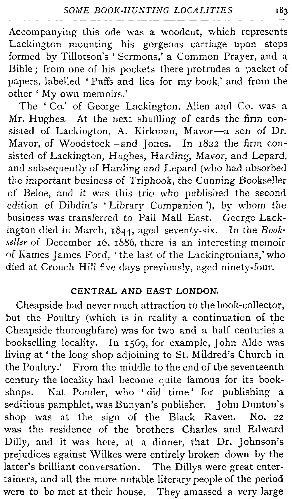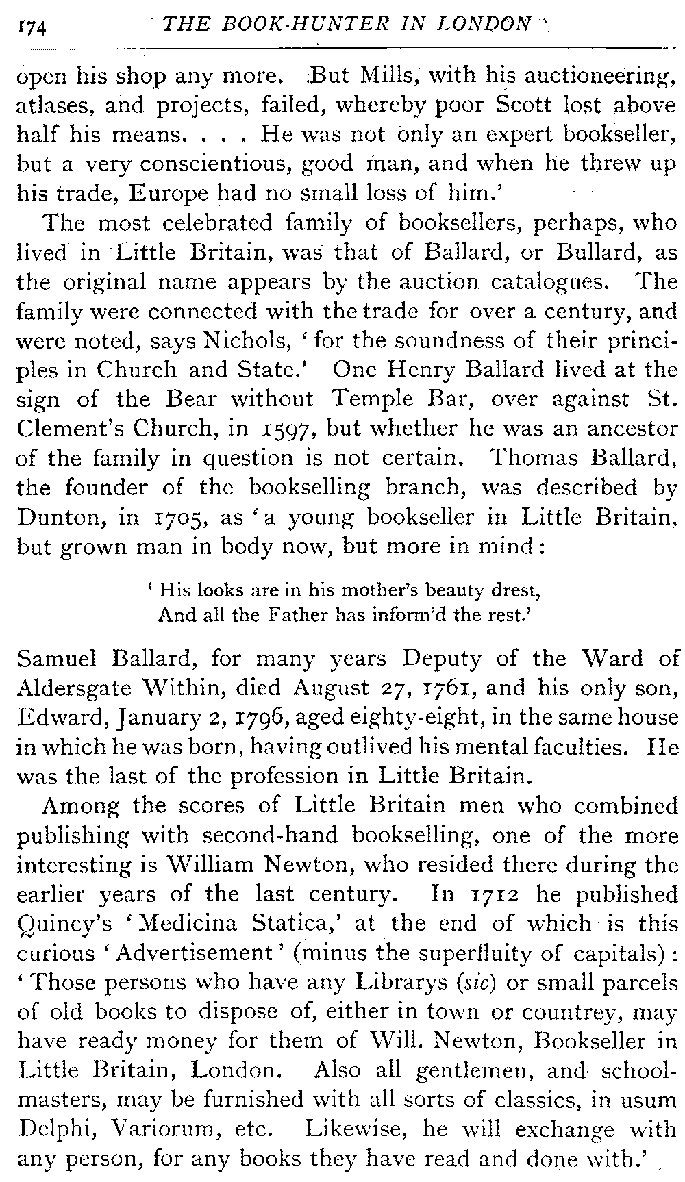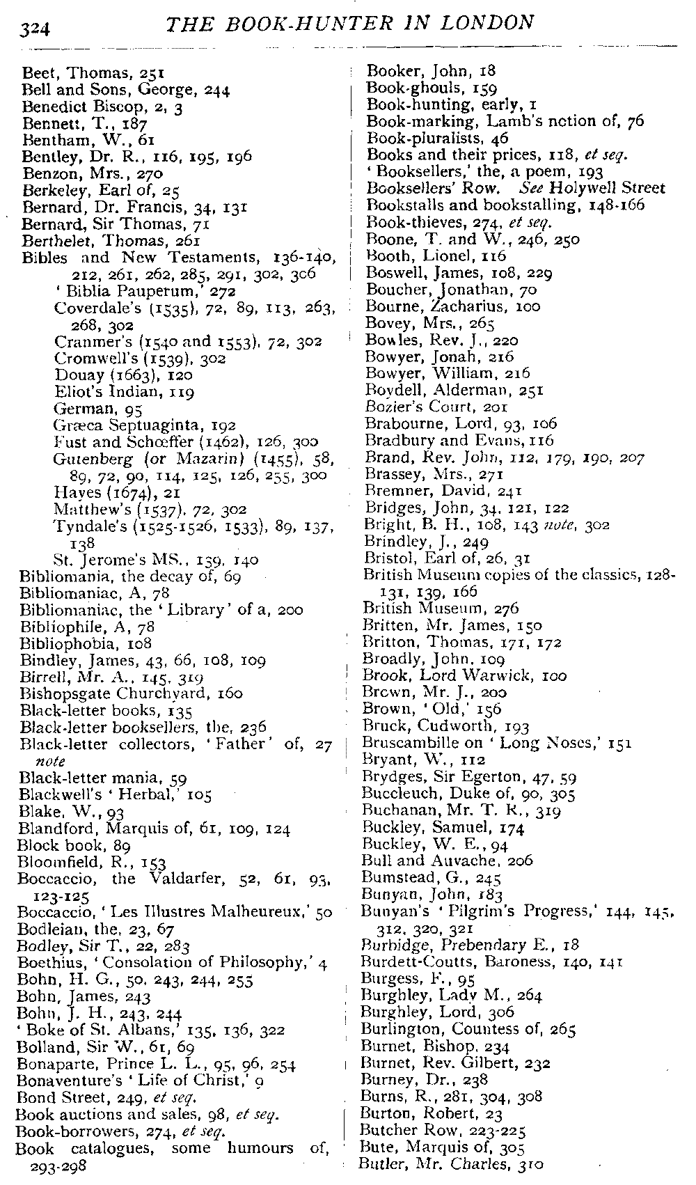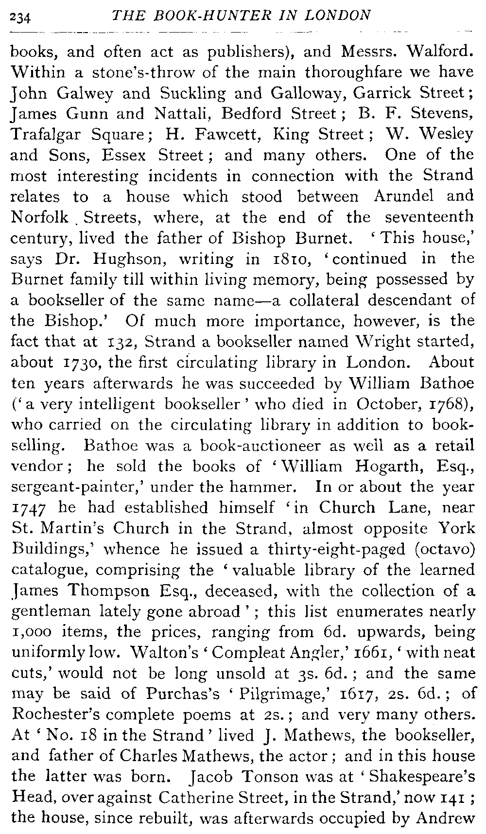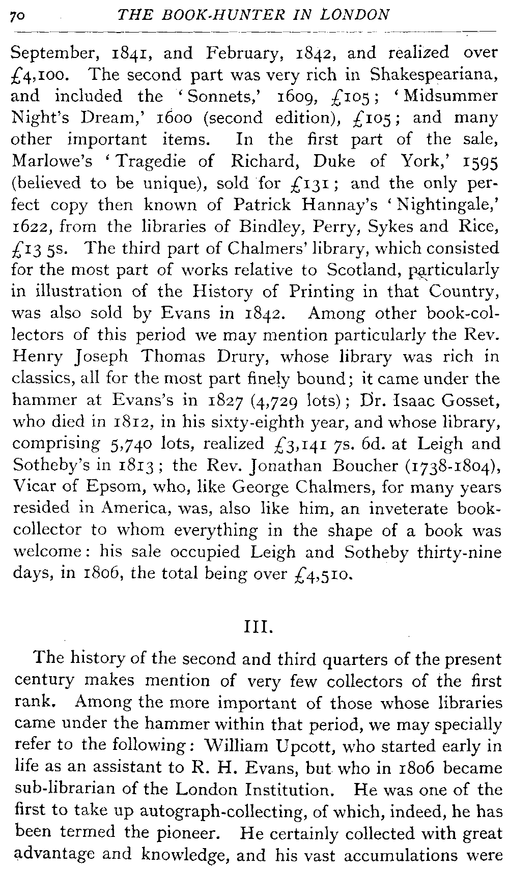 'The Book-hunter in London' is the outcome not only of material which has been accumulating for many years past, from published and unpublished sources, but also of a long and pleasant intercourse with the leading book-collectors and booksellers in London, not to mention a vigorous and constant prosecution of one of the most pleasant and instructive of hobbies. The author has freely availed himself of the information in the works of Dibdin, Nichols, and other writers on the subject, but their statements have been verified whenever possible, and acknowledgements have been made in the proper places to the authorities laid under contribution.