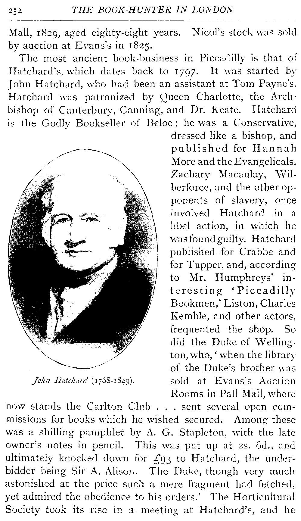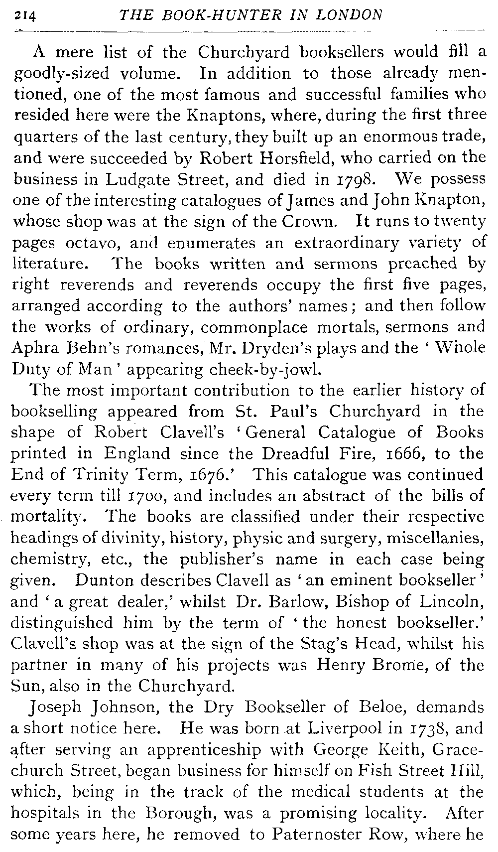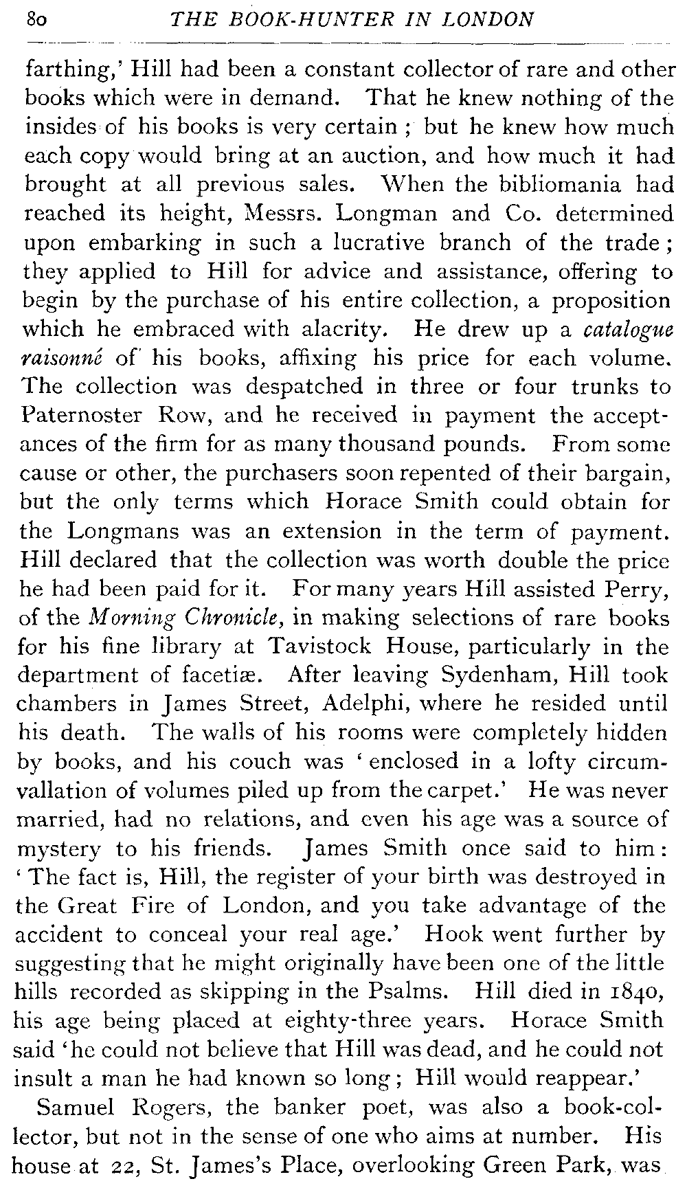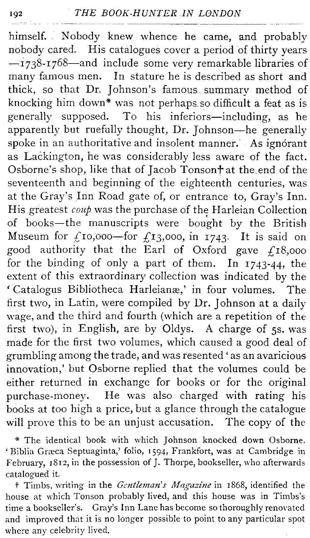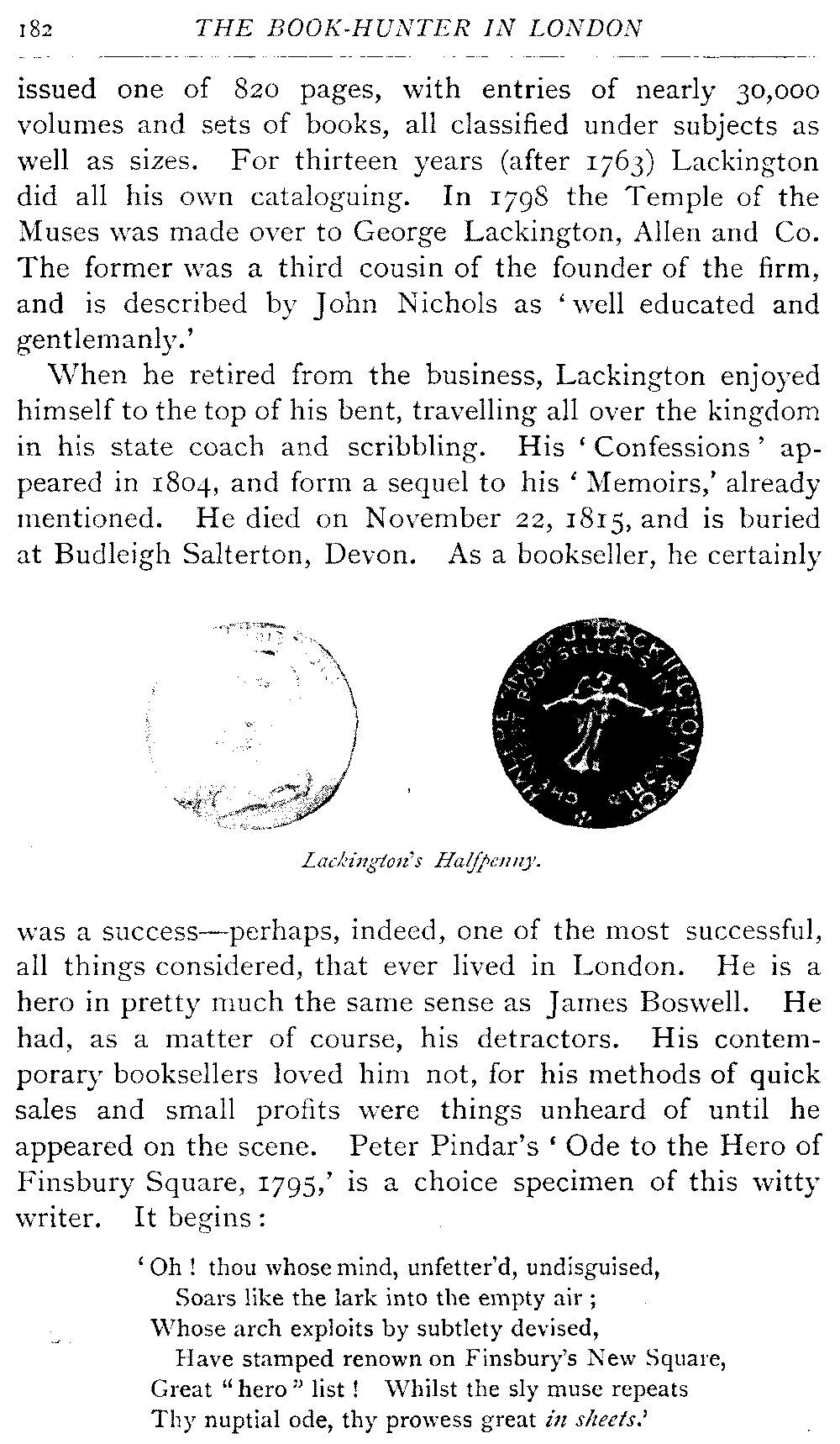 'The Book-hunter in London' is the outcome not only of material which has been accumulating for many years past, from published and unpublished sources, but also of a long and pleasant intercourse with the leading book-collectors and booksellers in London, not to mention a vigorous and constant prosecution of one of the most pleasant and instructive of hobbies. The author has freely availed himself of the information in the works of Dibdin, Nichols, and other writers on the subject, but their statements have been verified whenever possible, and acknowledgements have been made in the proper places to the authorities laid under contribution.