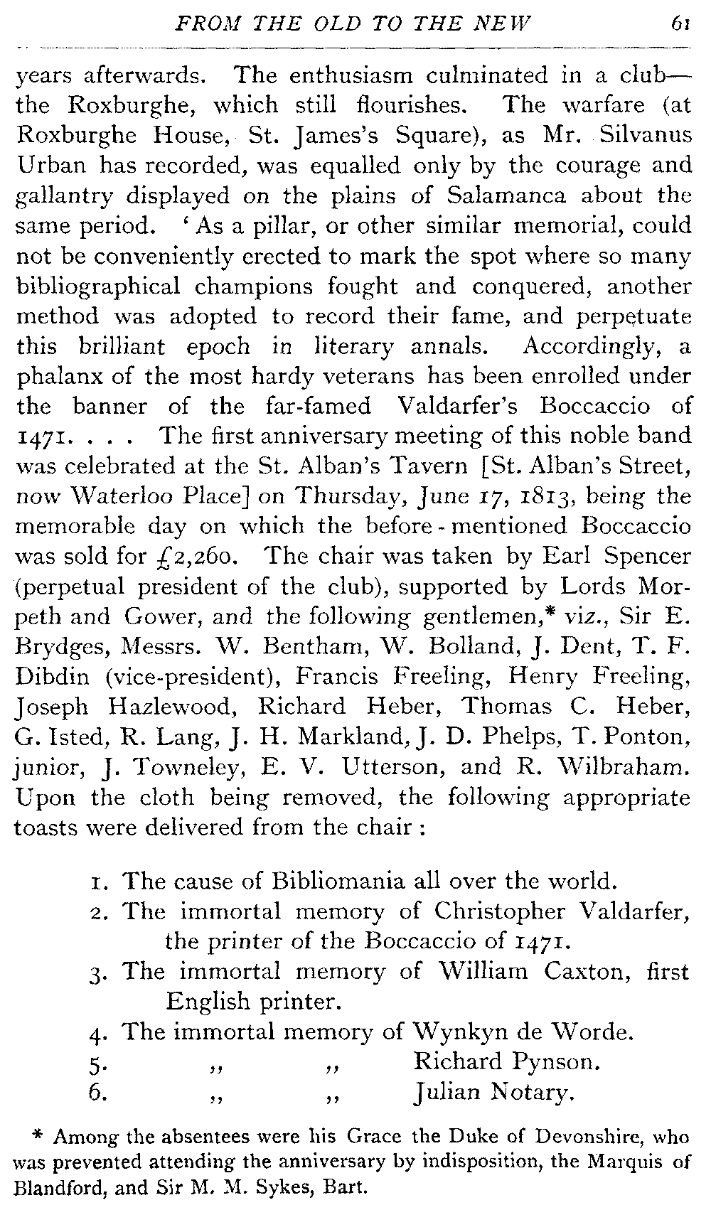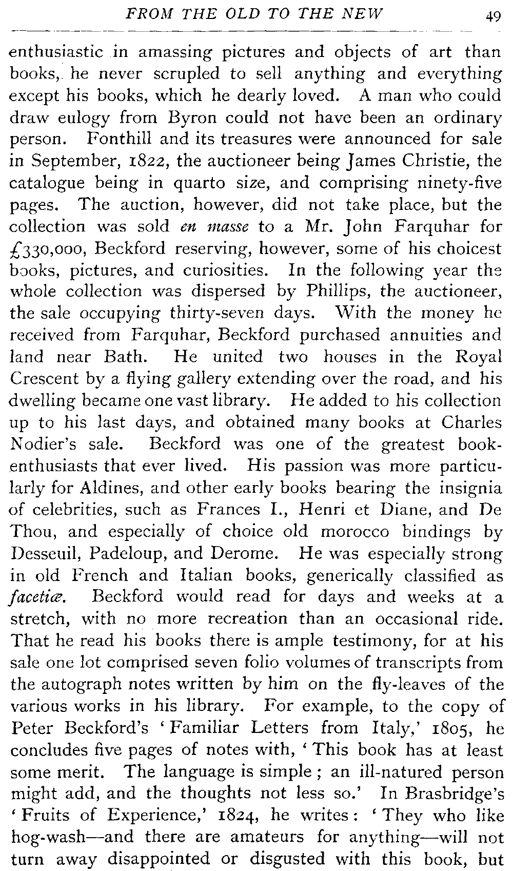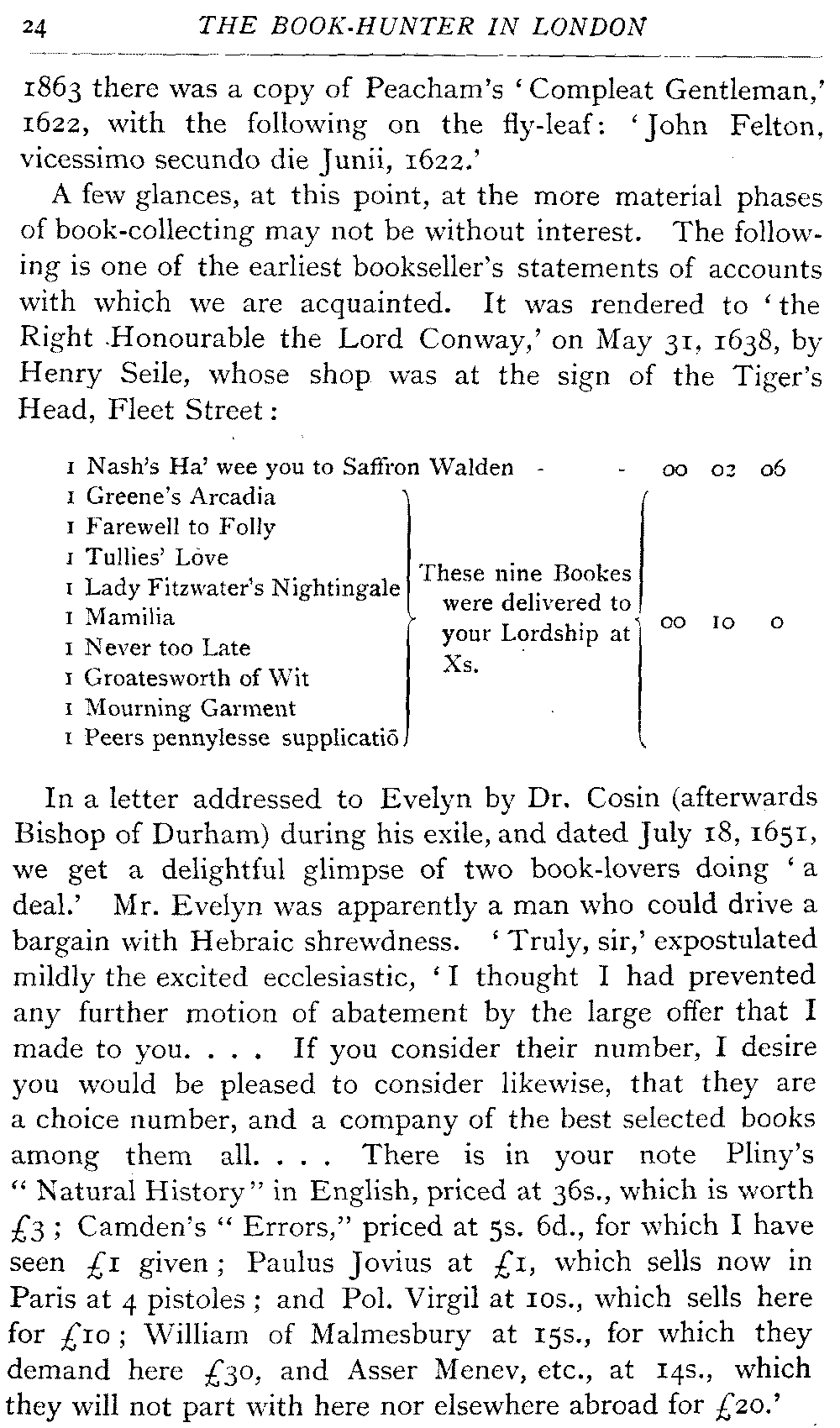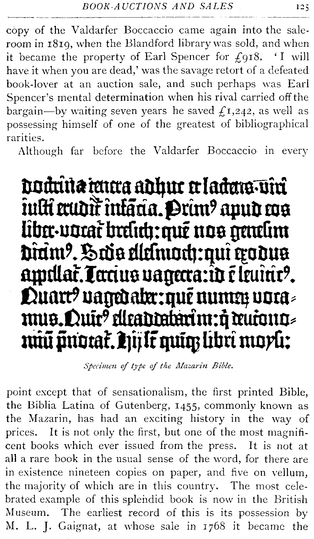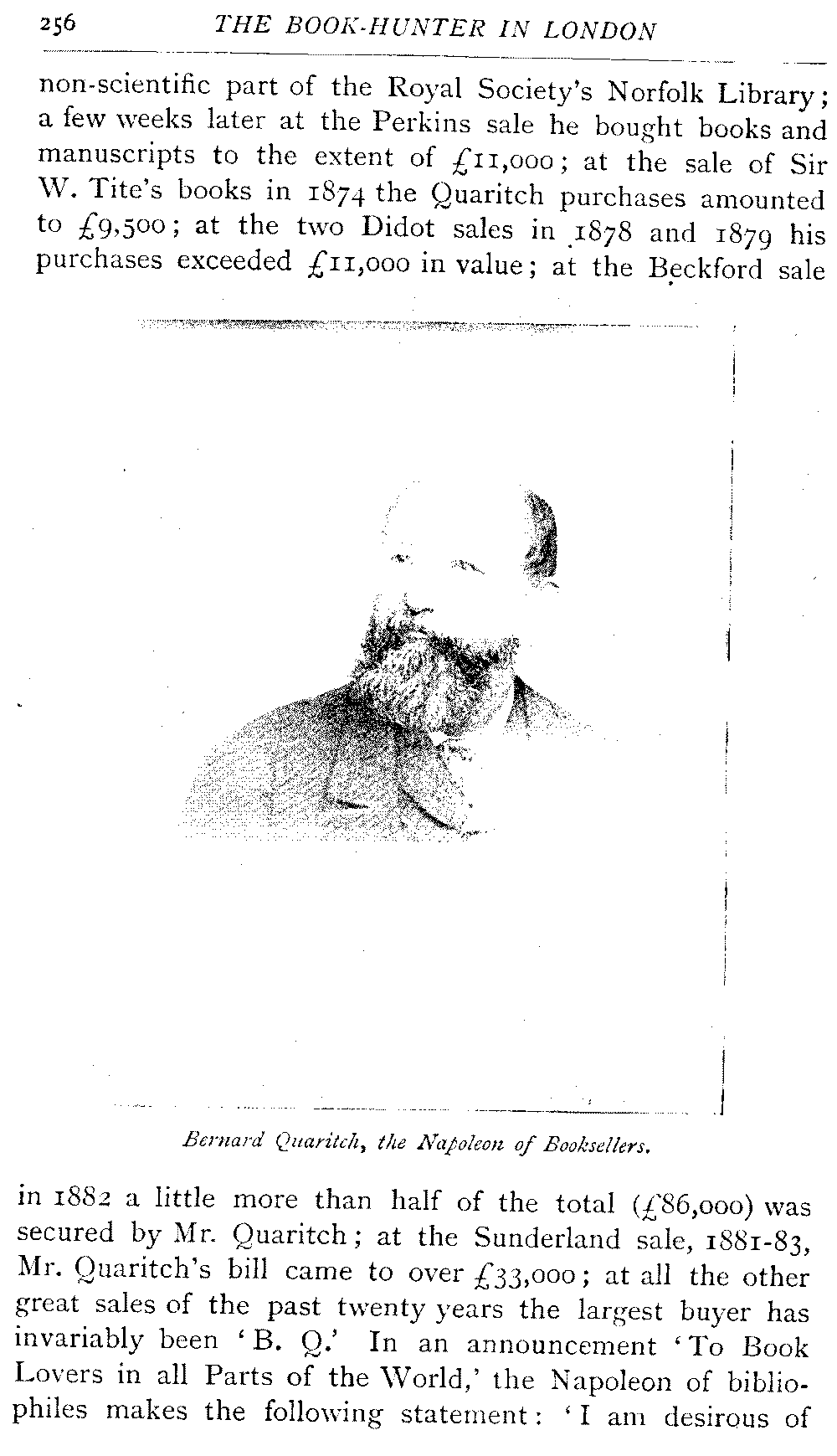 The contempt with which Dr. G. received the bookseller's proposal is peculiarly typical of the book-collector. If he cannot obtain what he wants just exactly when he wants it, he does not care about it. The book-collector is doubtless too prone to despise everything which is not quite in his line, forgetting that all branches of literature contribute in some degree, greater or lesser, to the bulk of human knowledge. No man can be universal, even if he had the wealth of a dozen Rothschilds, or the mental vigour and versatility of a hundred Gladstones.