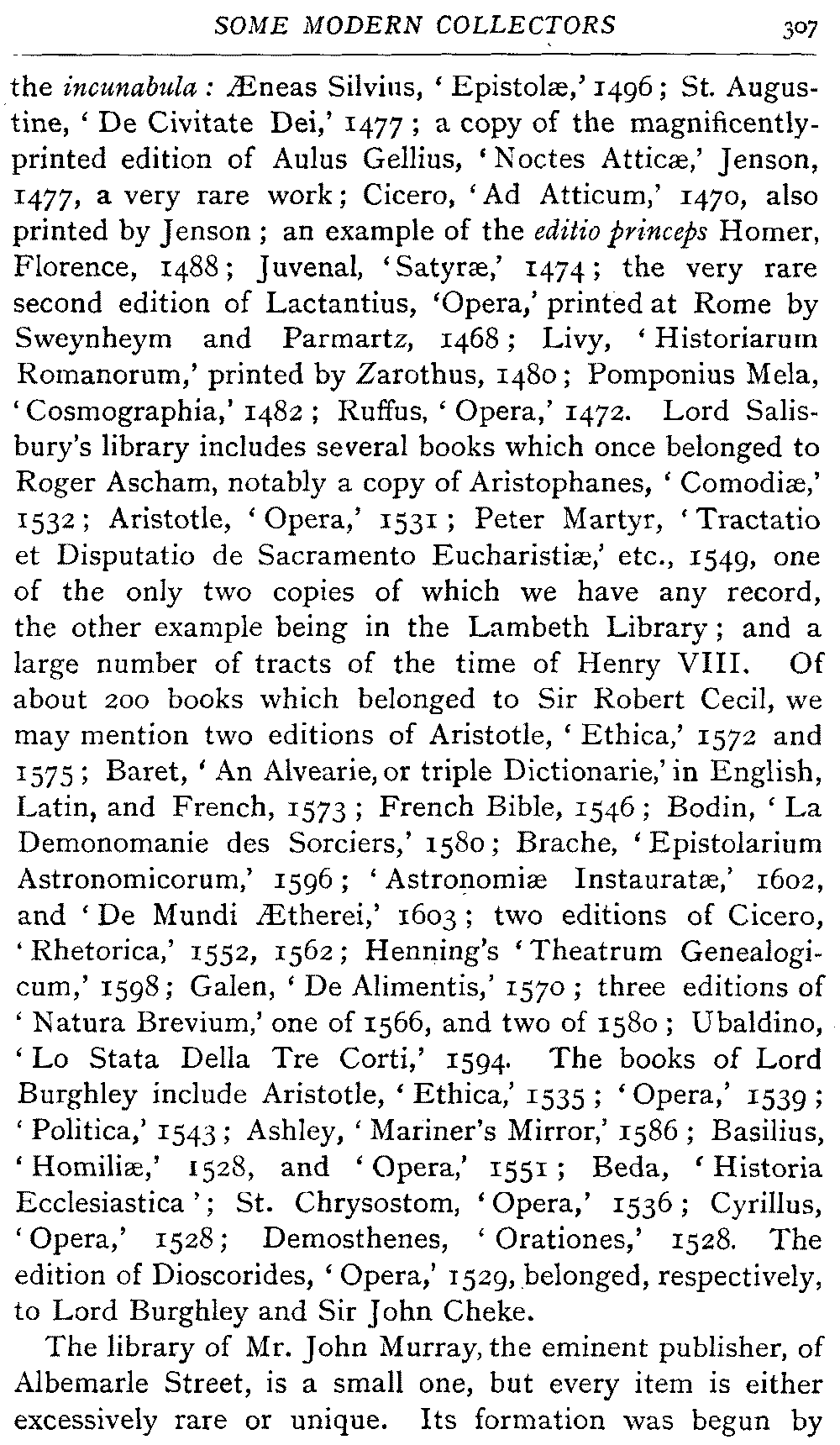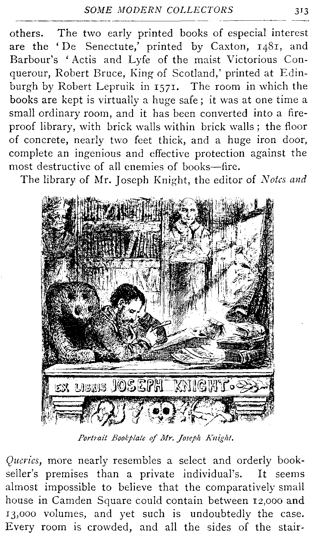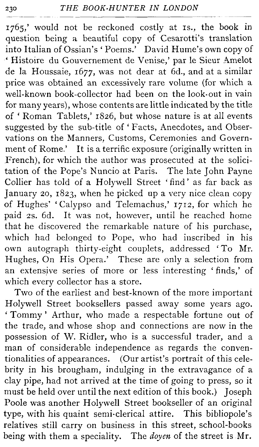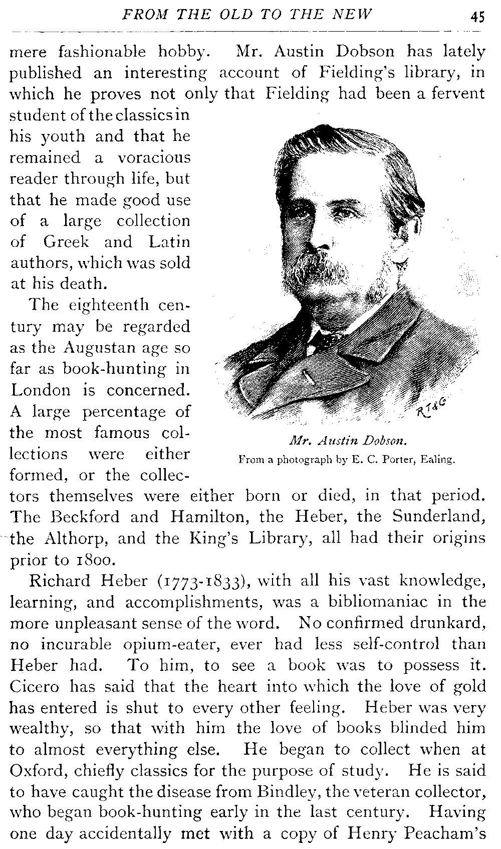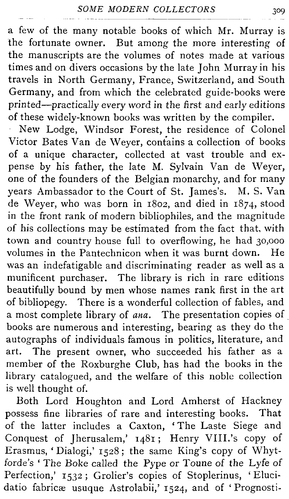 The contempt with which Dr. G. received the bookseller's proposal is peculiarly typical of the book-collector. If he cannot obtain what he wants just exactly when he wants it, he does not care about it. The book-collector is doubtless too prone to despise everything which is not quite in his line, forgetting that all branches of literature contribute in some degree, greater or lesser, to the bulk of human knowledge. No man can be universal, even if he had the wealth of a dozen Rothschilds, or the mental vigour and versatility of a hundred Gladstones.