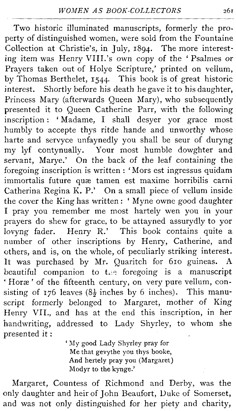 | WOMEN AS BOOK-COLLECTORS | 259 |