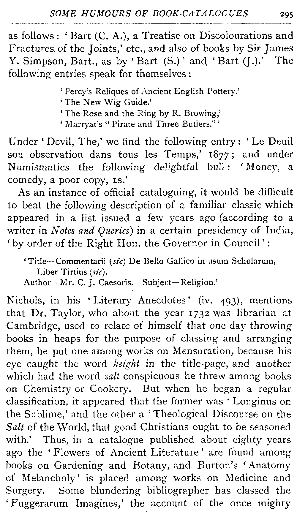 | SOME HUMOURS OF BOOK-CATALOGUES | 293 |
