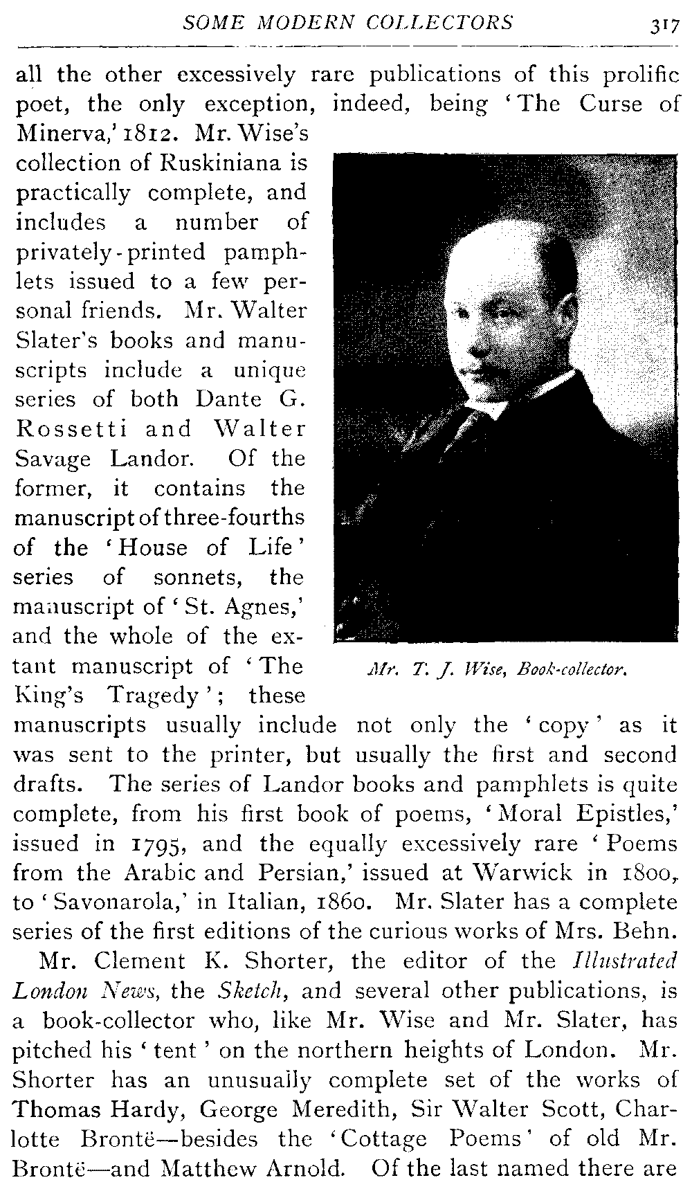 As regards the chapter on Modern Collectors, the author's object has been to deal with a representative selection of the bibliophiles of to-day. To aim at anything like completeness in this section of the book would be highly undesirable, having regard to a [xiv]proportionate representation of the subject as a whole. Completeness, moreover, would be an impossibility, even in a volume devoted entirely to modern men.
