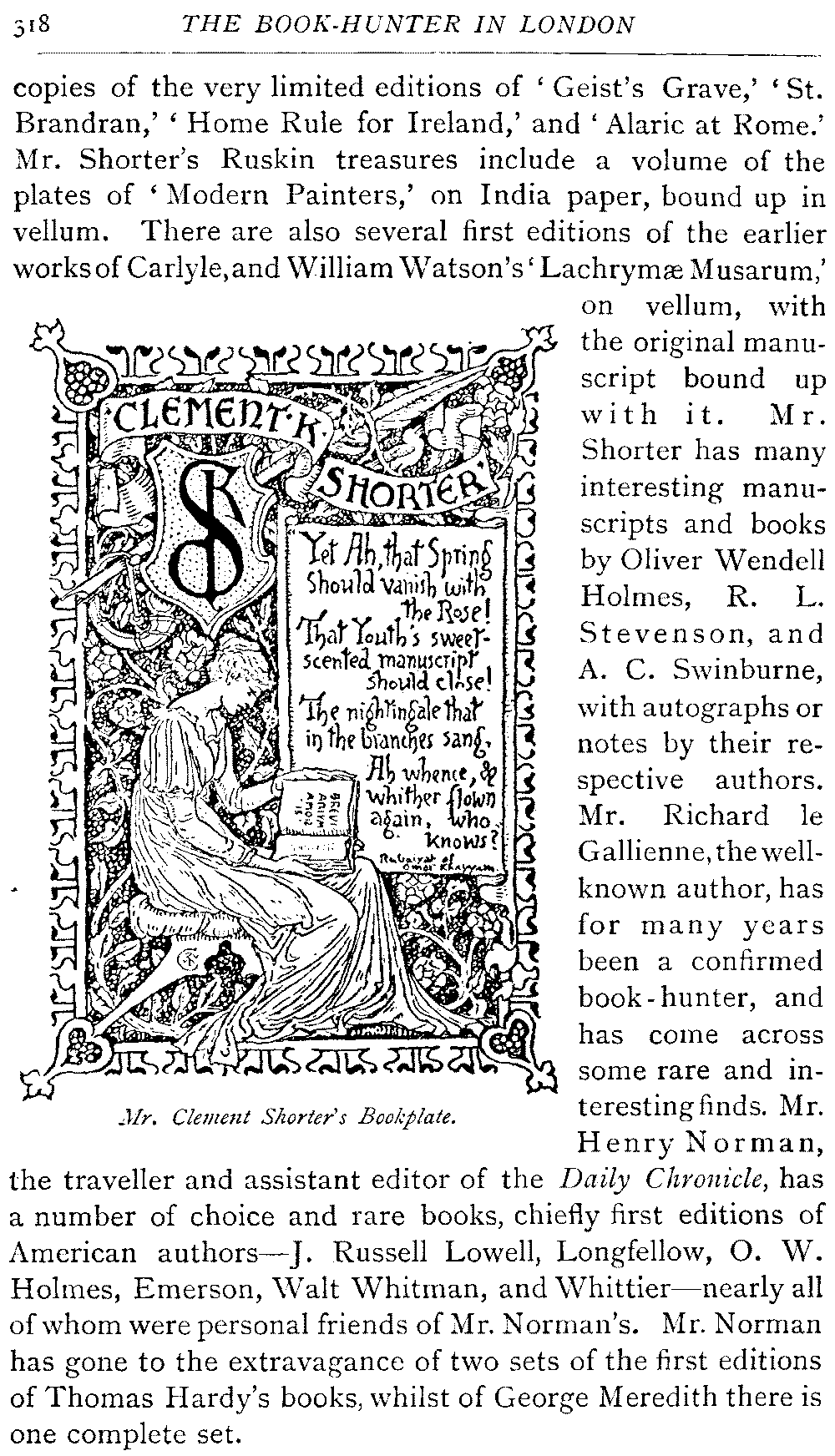 The task itself has been an exceedingly pleasant one to the author, and it only remains for him to thank, collectively, the large number of friends and acquaintances who have so cordially favoured him with advice and information on so many points. In only a couple of quite unimportant instances has he experienced anything approaching churlishness. The geniality and courtesy of the book-collector are proverbial, but specimens of a different type are evidently to be found here and there.