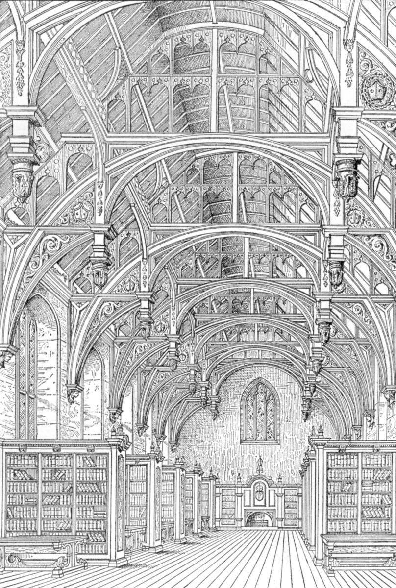This collection contained between forty and fifty volumes, [7]in which was included pretty nearly the entire range of human knowledge as it then extended. It is well to remember in connection with this bequest that, at the same time, or, more correctly, in 1300, the academical library of Oxford consisted of a few tracts kept in chests under St. Mary's Church.