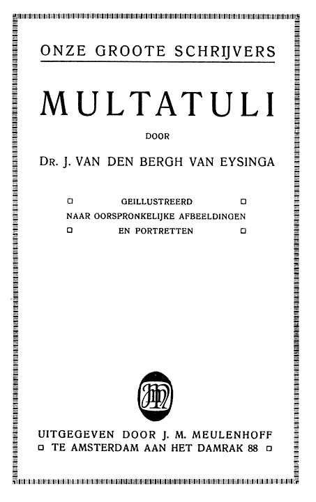 Bij weinig schrijvers zijn leven en werken zoo nauw verbonden geweest als bij Multatuli. Hij heeft eigen persoonlijkheid, eigen streven, eigen innerlijk én uiterlijk leven in het middelpunt zijner werken gesteld. Zijn leven heeft hij aan ’t verwerkelijken en verkondigen zijner Ideën gewijd.