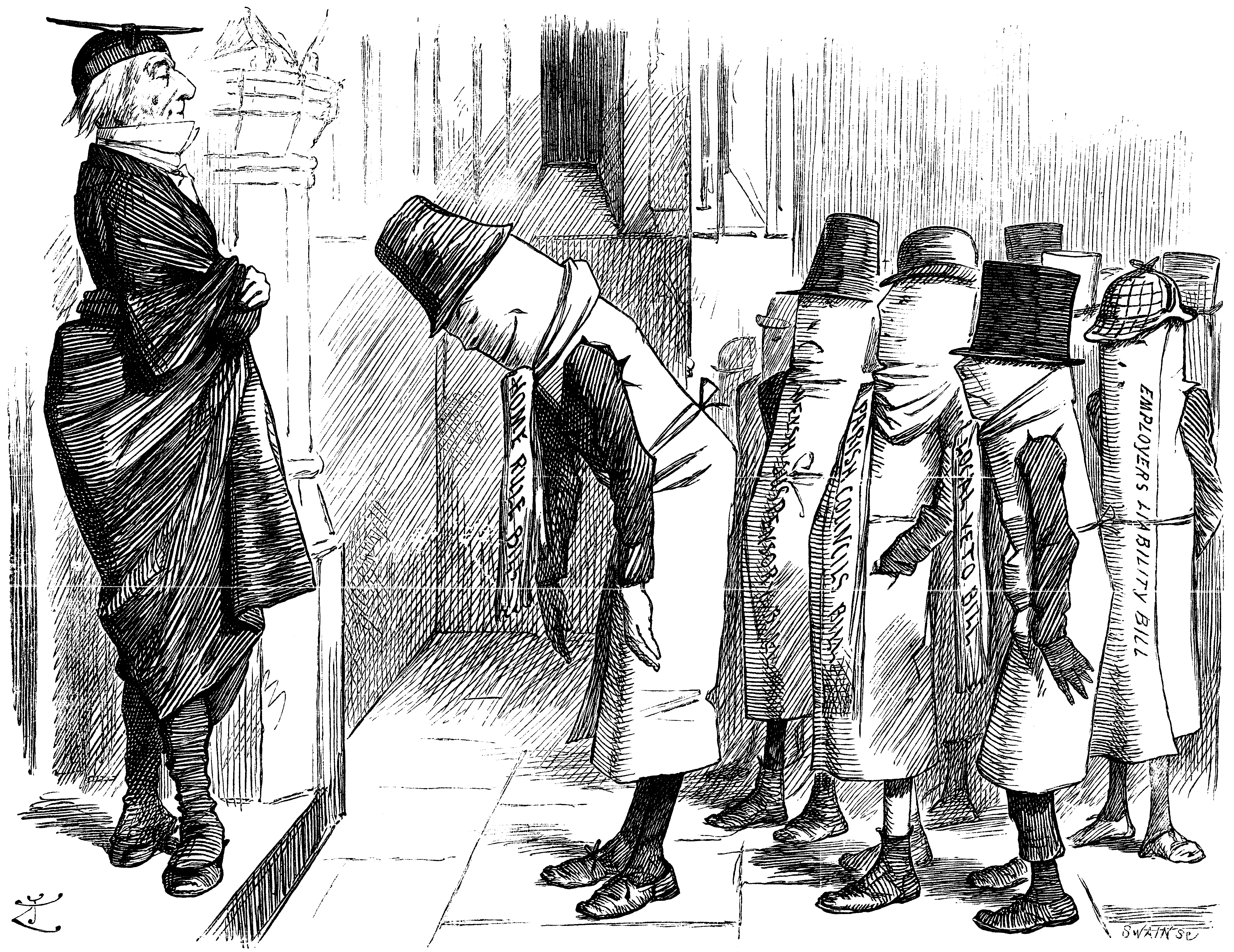 Earned a night's rest, and a longer Easter holiday than he has allotted to himself and us. Older he gets, the younger he seems. His work to-day should make the eight-hours' man blush. At bay in Downing Street since twelve o'clock with two hostile deputations. Came from Ulster and the City, resolved to beard Home-Rule Lion in his den. Alone he met them; one down, the other come on; no interval of rest; picked men from Ulster, Selected Captains from the City, surged around table at which he sat. Hardly left him time to reply. Having politely conducted Ulster to door, enter the City Fathers, fresh and eager for fray. Told him over again in varied phrase how he was bringing country to verge of ruin; listened with perfect courtesy, as if they'd been discussing someone else—say, his next-door neighbour, Squire of Malwood and Junior Lord of Downing Street. Up again when last in list of City speakers had concluded. Almost persuaded John Lubbock to be a Home-Ruler; then down to House, dealing with mass of correspondence littering his table in room behind Speaker's chair; alert on sound of division-bell; comes in to move Closure; remembers that in long list of speeches never made this particular one before; looks up Palgrave's Handbook; cons his lesson and declaims brief formula in deep rich voice that lends touch of eloquence to its unadorned, remorseless demand. All this, too, following on a day like yesterday, when two other deputations stormed Downing Street; drew from him weighty reply; followed, after hasty dinner, by a speech in the House on the eternal Irish question, which Grandolph rightly termed, "entrancing."