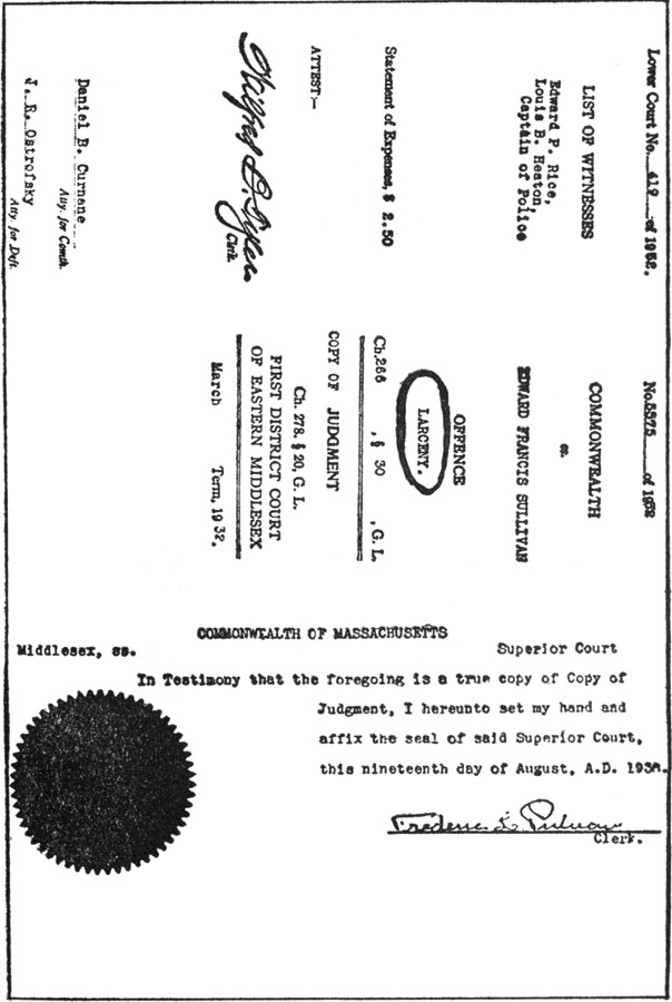 | Judgment showing conviction of E.F. Sullivan | 138-139 |