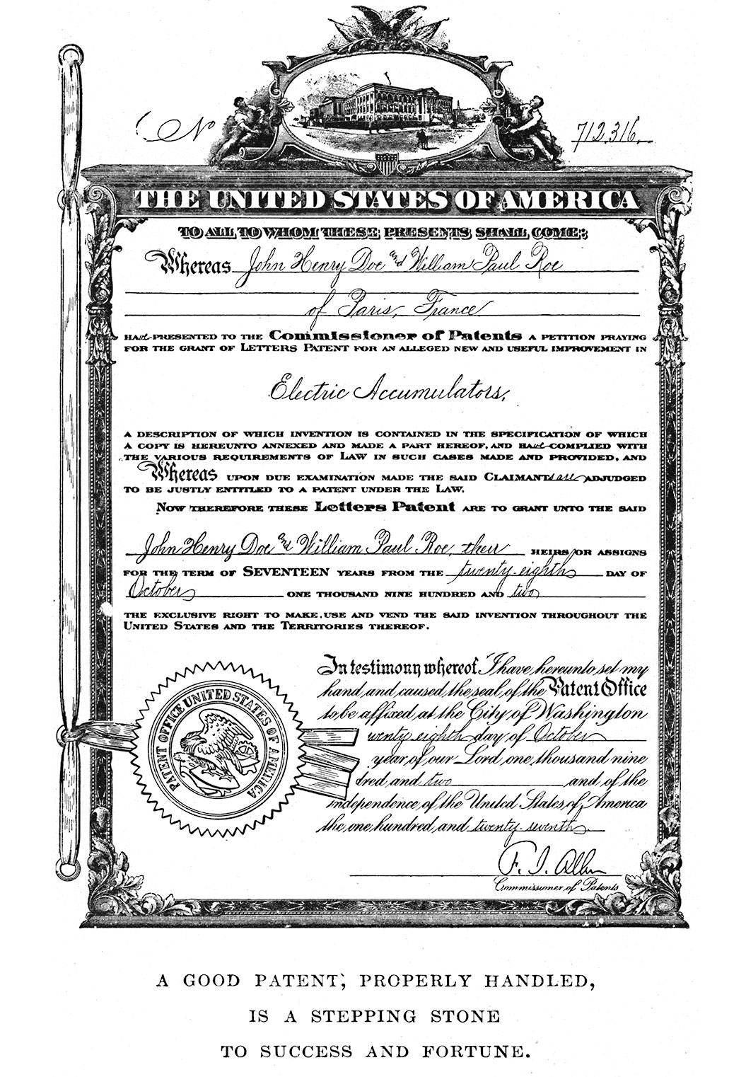 Speaking along this line in an official report the chief examiner of the Patent Office says: "A patent, if it is worth anything, when properly managed, is worth and can easily be sold for from $1,000 to $50,000. These remarks only apply to patents of ordinary or minor value. They do not include such as the telegraph, the planing machine, and the rubber patents, which are worth millions each. A few cases of the first kind will better illustrate my meaning: