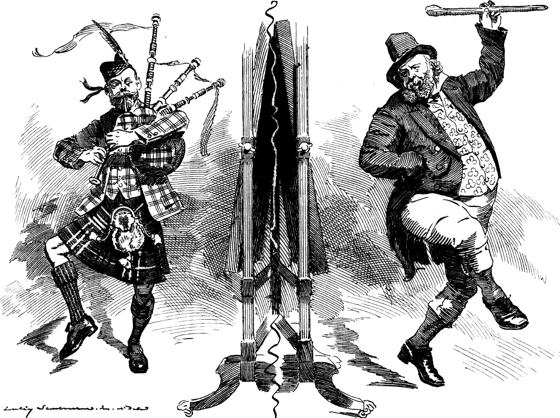 Business done.—New Chairman baited for an hour by Westminster Clock. Before the lawless, disorderly squabble about Law and Order in County Clare, regular foot-ball scrimmage, in which Saunderson naturally turned up. In one of the pauses the Colonel dropped into poetry? could hear him crooning to himself:—
