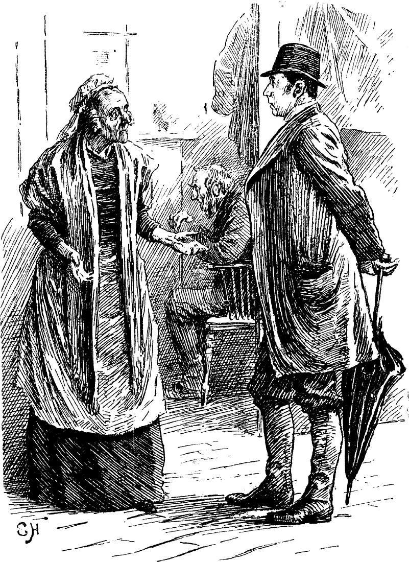 Mrs. Sharply (to the Doctor, who has looked in, having heard that her "good man" is ailing). "No, I thank ye, Sir. You see I've heerd of you, Sir, as you've been 'Practising' here for the last Three Years, and so I'd rather you went 'Practising' elsewhere, as I don't want no 'Speriments on my Old Man!"