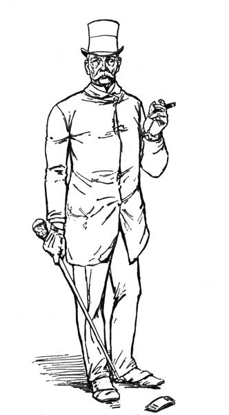 Tipped on the back of his head, but well down over it, he wears an antique high hat, which has assumed that patient, resigned expression occasionally to be observed in the face of some venerable mule, which, having long and hopelessly struggled to free herself of a despicable bondage, at last bows submissively to the inevitable and trudges bravely on till she dies in her tracks.