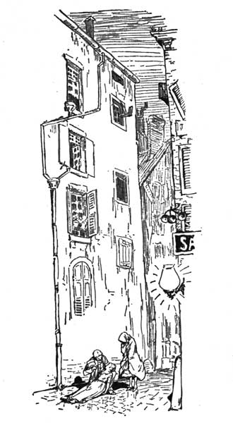 Seated in one corner of the room, over a small, red-hot stove, was a queer-looking little man. There was a tin plate on the stove from which the odor of melting cheese arose, and mingling with the odor of burning tobacco, contributed from the little man's pipe, burdened the atmosphere with dense and by no means delightful fumes. The little man had a fork in one hand and a mug of beer in the other and he was snatching the cheese from the plate, shoving it into his mouth and washing it down with the beer at a rate and with a disregard of heat and cold that were wonderful to observe.