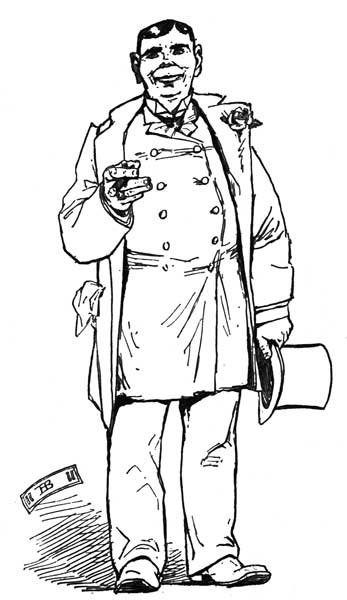 These remarks, amplified and extended, appeared in the papers, together with interviews with the strikers and many thrilling incidents of the struggle. Public interest was aroused in the most general and intense degree, and Mr. Scollop's cashier made daily trips to the bank with a bushel-basket full of dimes. How long the contest would have continued and what the final result would have been are problems too deep for me. But at the end of the first week Grandmother Cruncher's rheumatism was too much for her and she was compelled to retire. Short as was her professional career, it gave her undying fame. In labor circles many ugly rumors are floating about concerning the management of the strike. It is broadly intimated that the whole thing was a "sell," and significant remark is made upon the fact that Runty, the Dwarf, shortly after the strike was ordered off, appeared upon the street scintillating under a new diamond pin. One of the leading daily journals editorially explained the matter by stating that the rheumatism story was a ruse, that public interest in Grandmother Cruncher began to wane, and that thereupon Manager Scollop "fixed the matter up" with the strikers. Tony, however, declares that the Brotherhood gave in, while Runty says it is stronger than ever and more than ever determined to protect[Pg 297] the rights of its members. Where the exact truth lies it is far from me to say, but it may be pertinent to mention that Runty and Mr. O'Fake have started a saloon in the Bowery.