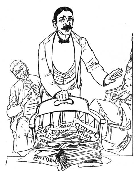 Mr. O'Fake brought his clinched fist down upon the back of the Chair in front of him with a smart tap and looked proudly at the admiring faces of his fellow-members. Mr. O'Fake was eminent for his attainments as a speaker, and well he knew it. A murmur of applause broke out as he stopped, but he stilled it with a majestic wave of the hand.