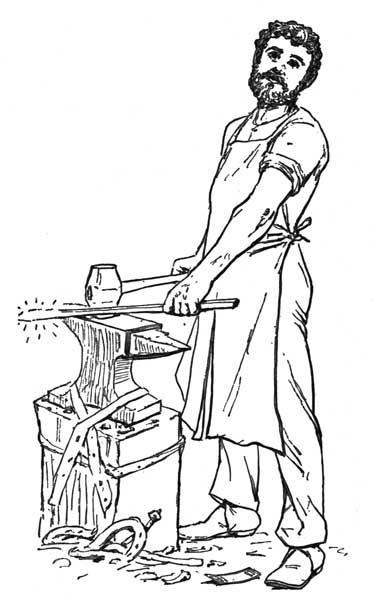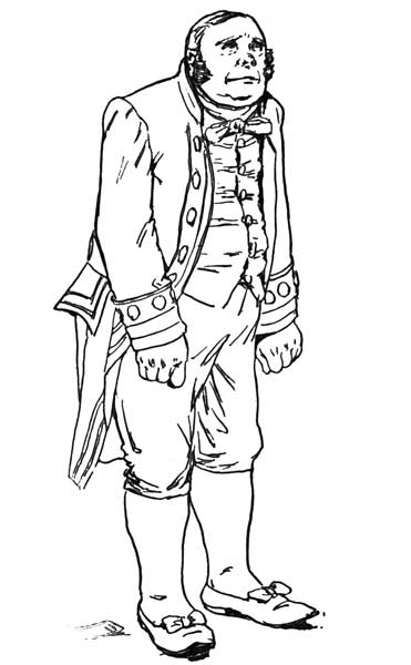 He was anything but a pretty little man. His head was big and his body small and his legs very short and very thick. He sat upon a keg, the top of which he quite amply cov[Pg 277]ered, but his feet came scarcely half-way to the floor. His gray eyes twinkled from holes sunk far into his head, and twinkled so brightly that you had to look at them, but so sharply that you wouldn't if you could have helped it. He peeked quickly at Mr. O'Fake, and cried in a shrill voice: