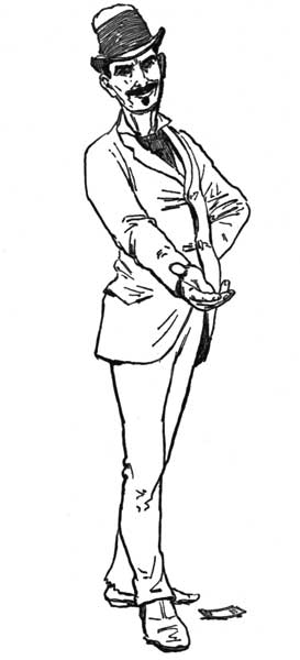 They got into the hall with as much speed as possible, and there, coming toward them was Mr. Cinch, his round face lighted with a peaceful smile. He paused, and there was something in his manner and attitude that caused them to pause as well. He brought his pudgy feet closely together and straightened[Pg 268] his figure to its loftiest possibility, as if to call attention to its perfect beauty.