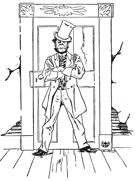 Mr. O'Fake was standing with his back against the door, his arms folded, his hat on the side of his head, and an ominous expression on his face.