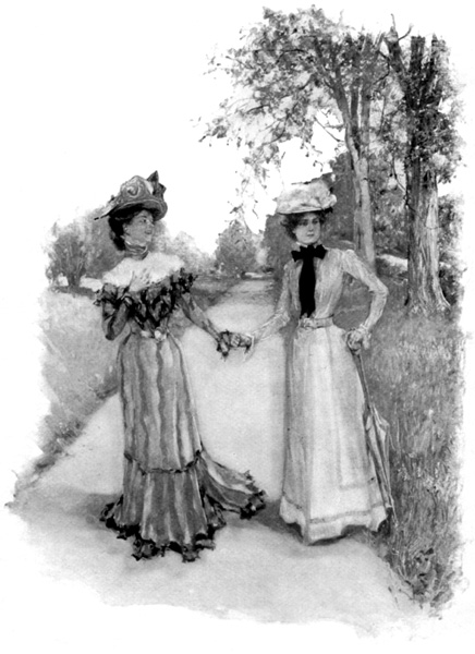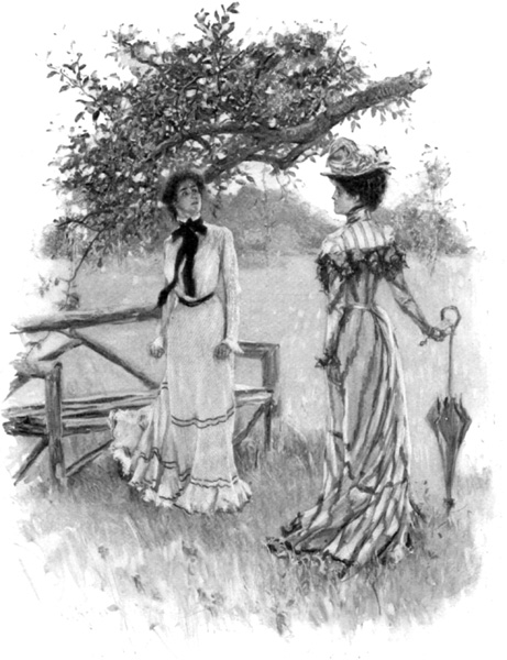 When John reached this garden-house, the young lady was already there. She was not tall; her face [10] was very white, but not pale; and her light hair fluffed itself all about her head, under her wide hat. She wore gold spectacles which greatly enhanced the effect of her large blue eyes. John thought she was the prettiest flower which had ever showed itself in that garden.