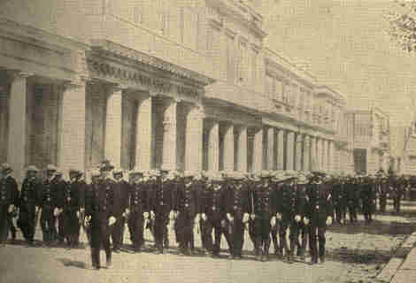 The United States Government Building was most interesting. New inventions made its exhibits live. In place of reading reports and statistics, you saw scenes and heard sounds. Class-room songs and recitations were reproduced by the graphophone. The biograph showed naval cadets marching while at the same time you heard the band music. Labor-saving machines were represented in full operation. Pictures by wire, the mutoscope, and type-setting by electricity were among the wonders shown. Every day a crew of the life-saving service gave a demonstration, launching a life-boat and rescuing a sailor. Near by was a field hospital, where wounded soldiers were cared for. Many of the newest uses for electricity were displayed. Never before had lighting been so brilliant or covered such large areas, or such speed in telegraphy been attained, or telephoning reached such distances. The akouphone, a blessing to the deaf, was exhibited, as were also the powerful search-lights now a necessity at sea.